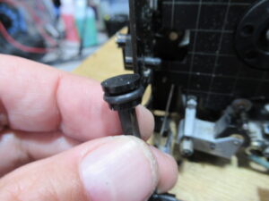 ピンチローラーアームを取り外しました。シャフト部のグリスが乾いて白くなっています。