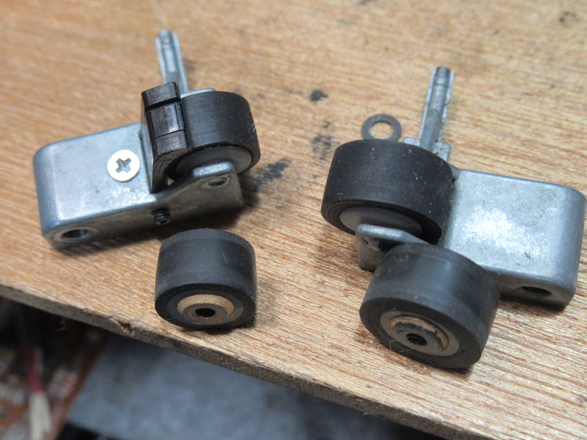 ピンチローラーアームを取り外しました。シャフト部のグリスが乾いて白くなっています。