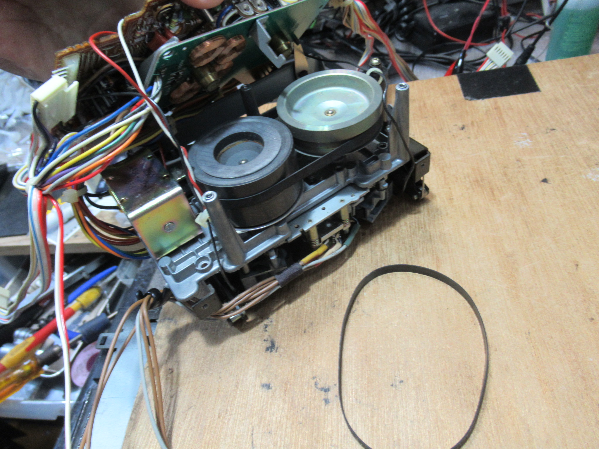 背面のモーター基板を取り外し、キャプスタンベルトを交換します。