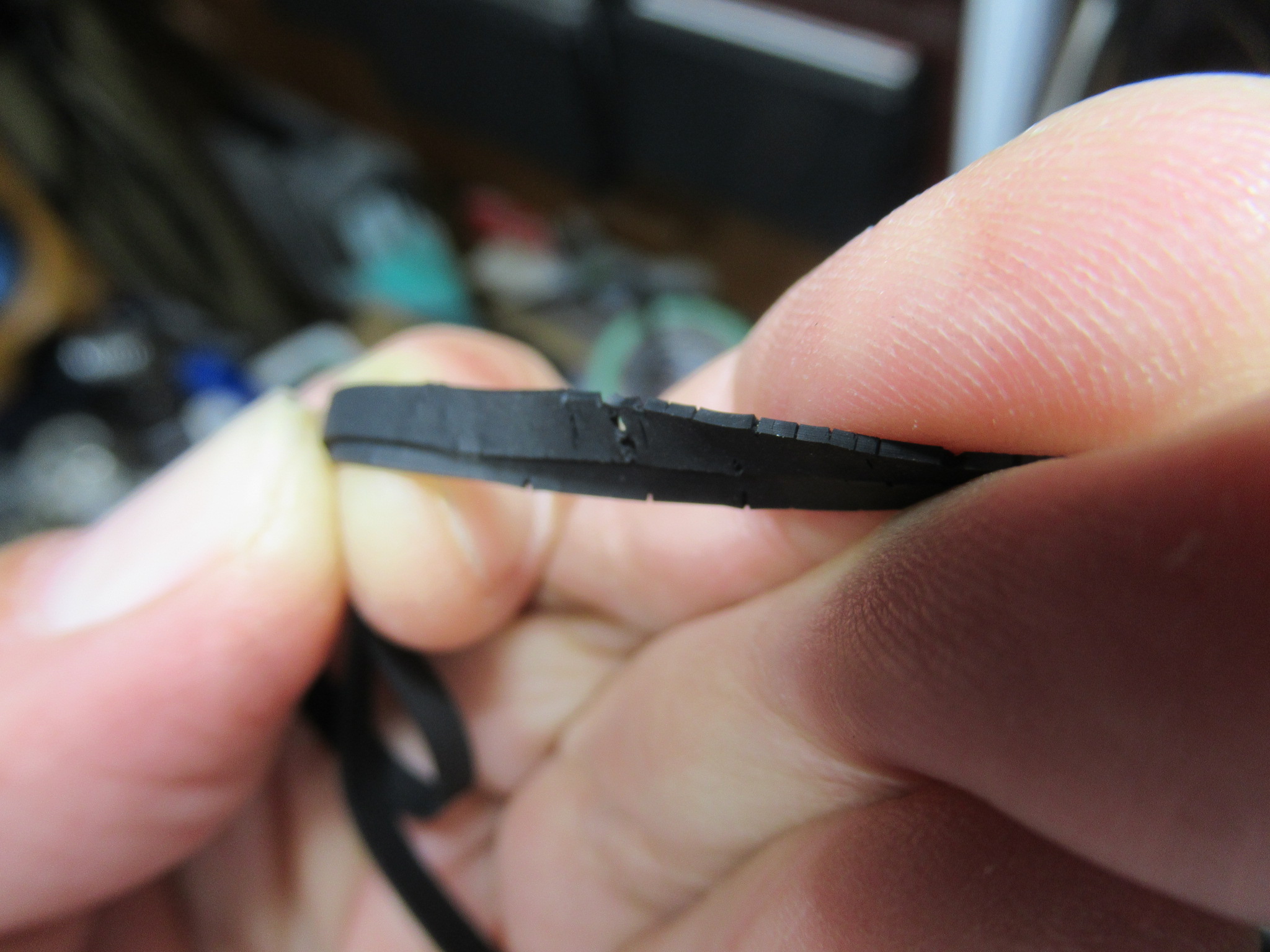 純正のベルトではありませんので、おそらく2年前の修理で交換されたと思われますが、品質に問題があったようです。