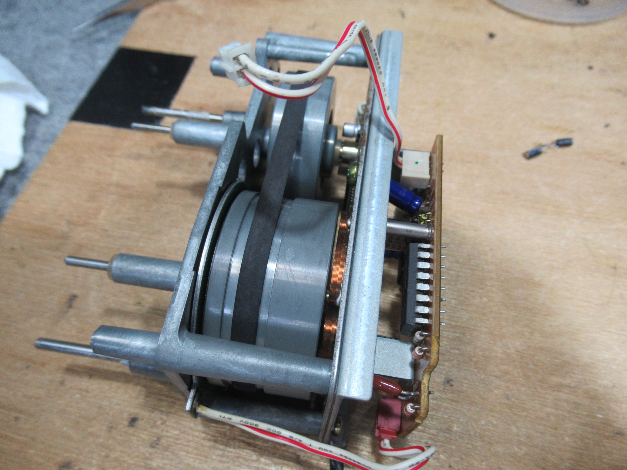 新しいベルトを掛けて組み付けます。当店のキャプスタンベルトは、国内工場に発注して製作した高品質のものとなります。