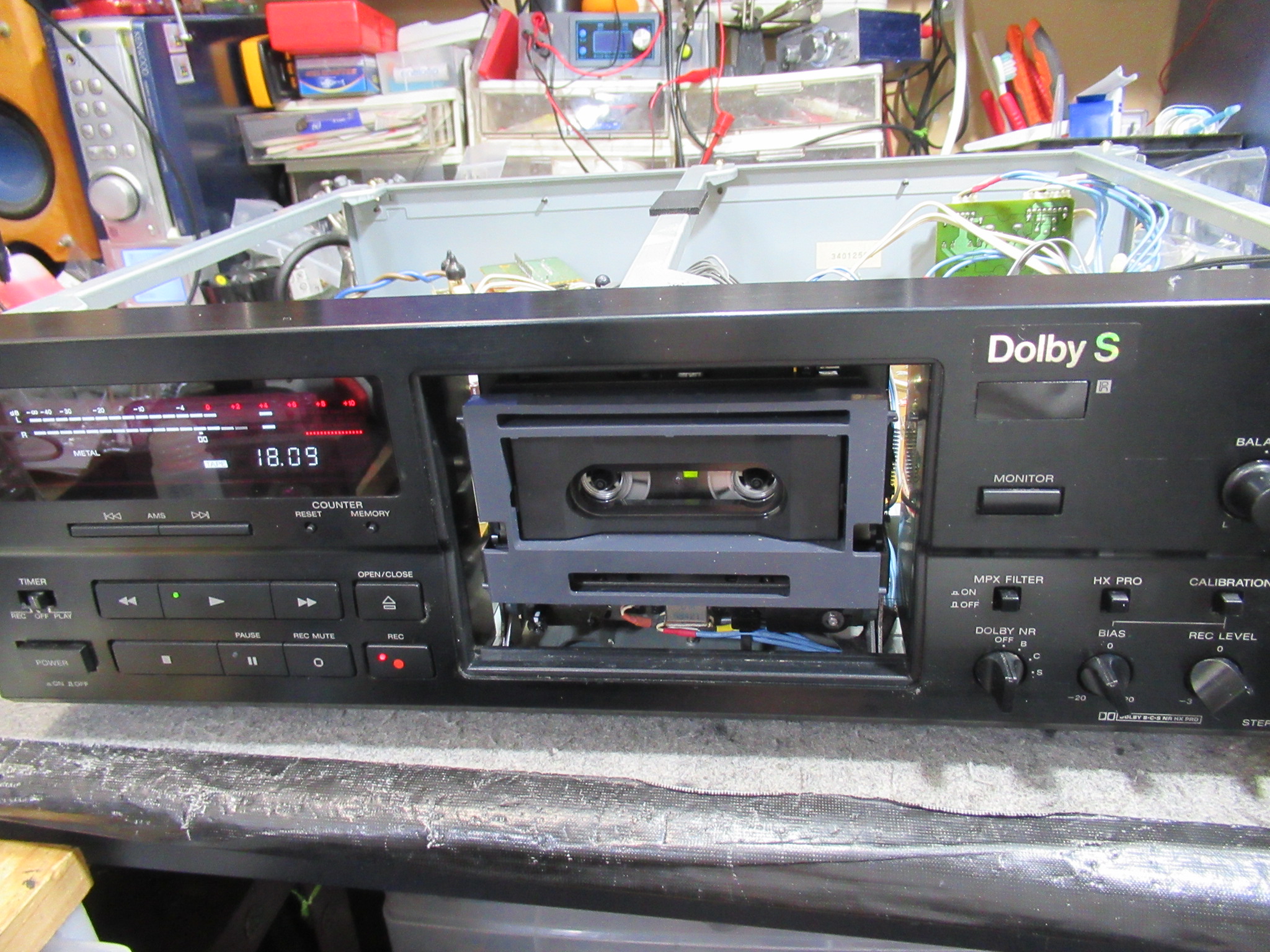 SONY製3ヘッドデュアルキャプスタンカセットデッキ、TC-K222ESJの修理依頼をいただきました。 ドルビーSを搭載した高性能機です。 イジェクトボタンを押すと、モーターの唸る音が聞こえるのみで動 …