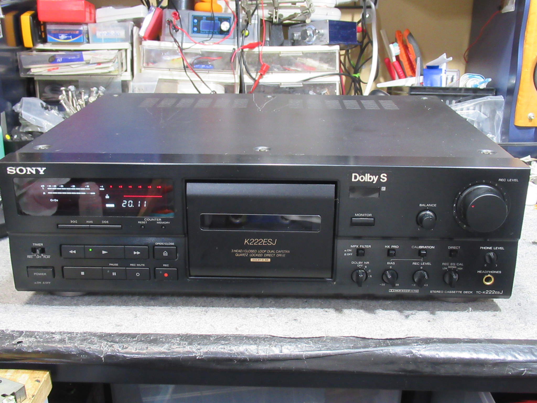 SONY製3ヘッドデュアルキャプスタンカセットデッキ、TC-K222ESJの修理依頼をいただきました。 10数年前に一度修理し、その後は快調に動作していたものの、最近になって再生できなくなったとのこと …