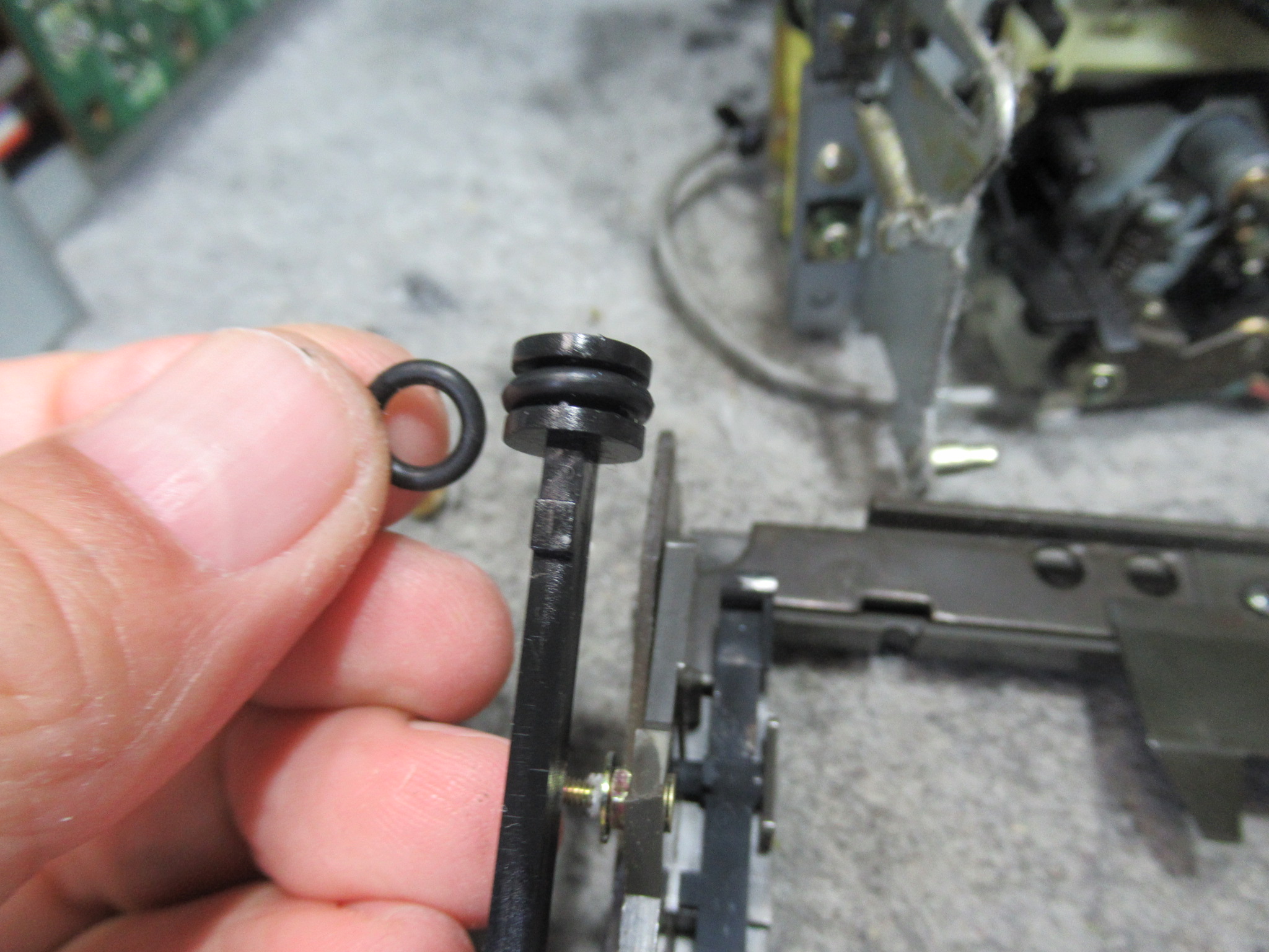 トレイが開くときの衝撃を吸収するダンパーゴムを交換します。