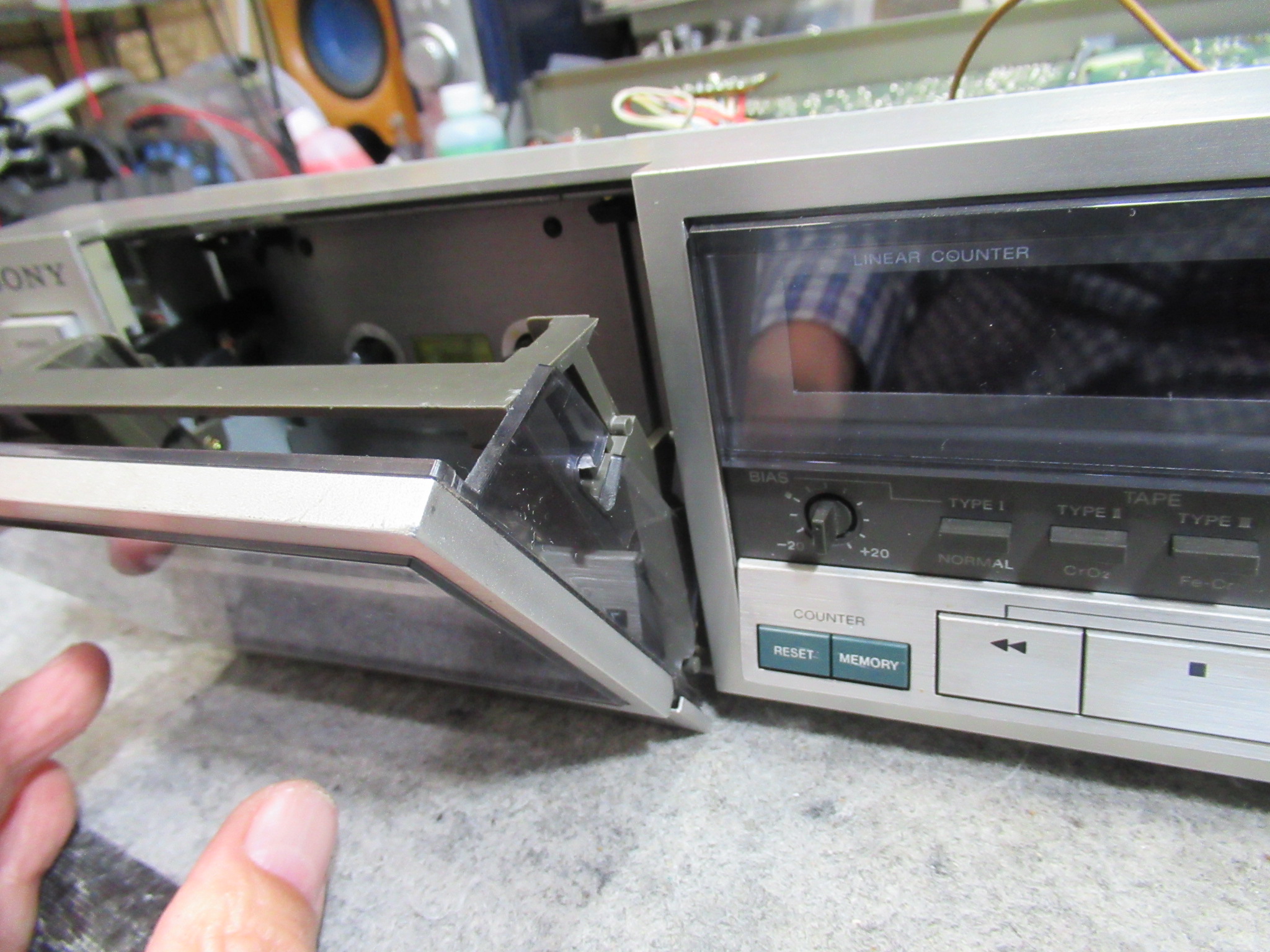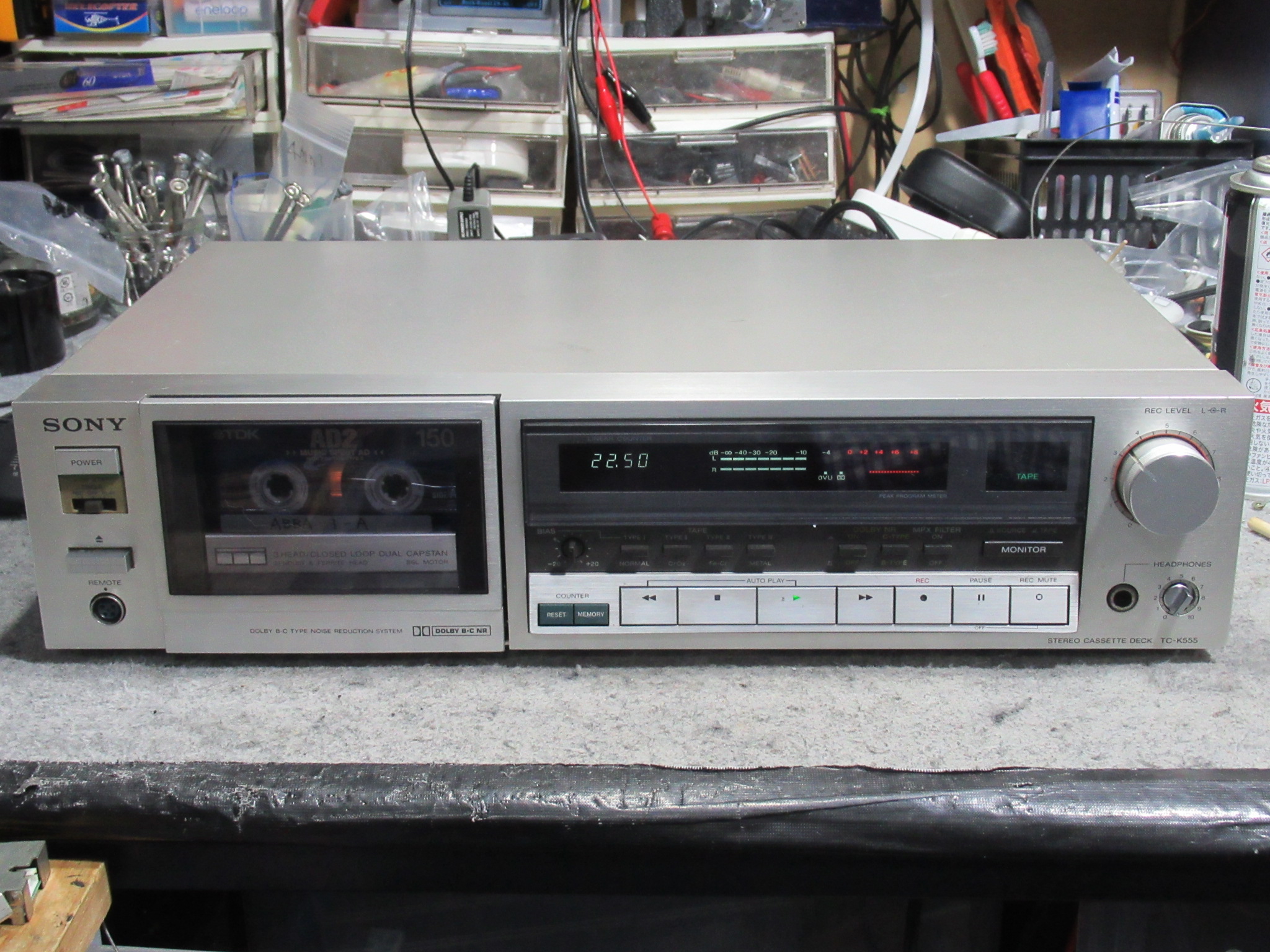 SONY製3ヘッドデュアルキャプスタンカセットデッキ、TC-K555の修理依頼をいただきました。