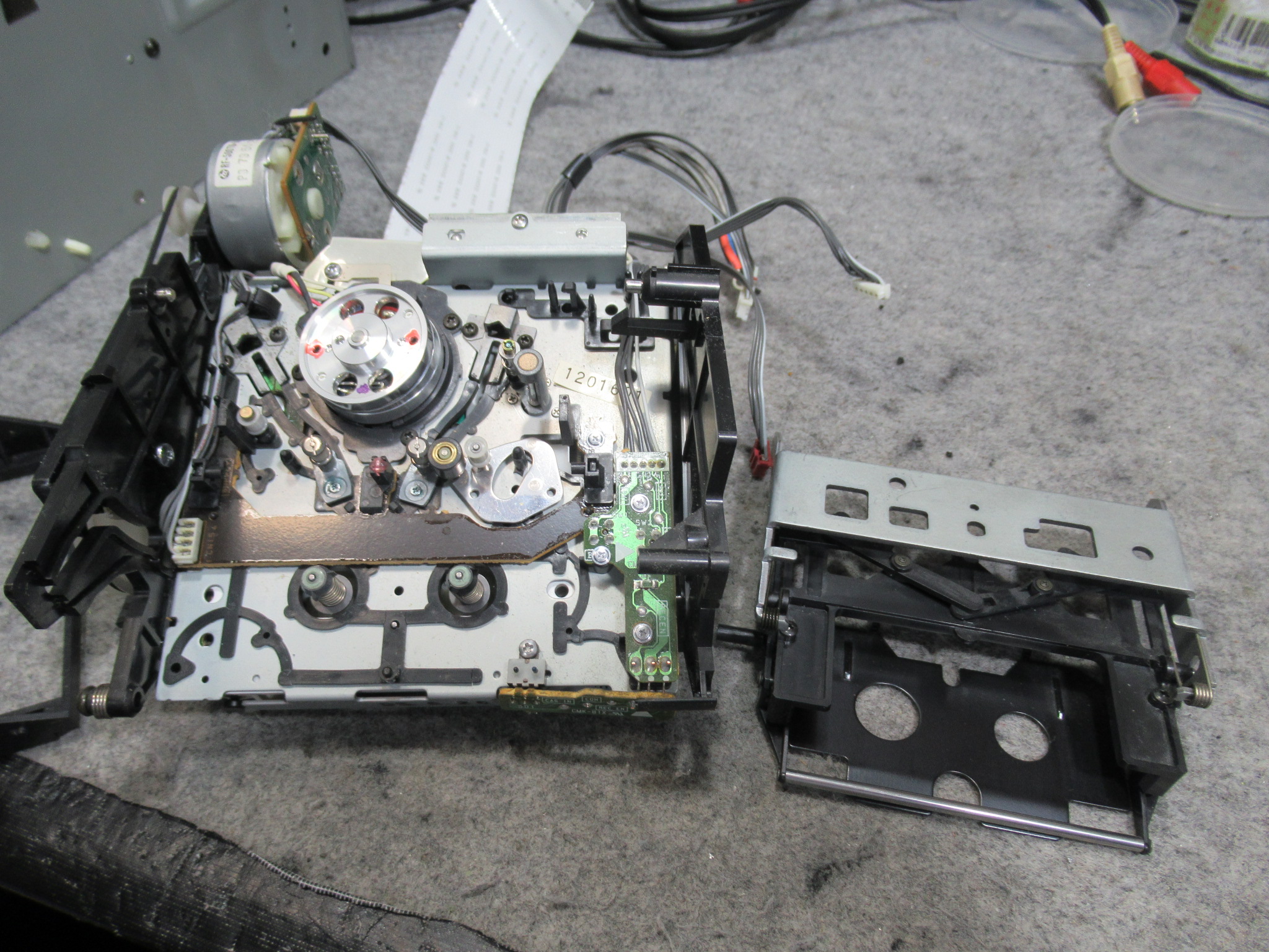 本体に戻して動作確認を行います。正常にテープ走行するようになりましたが、LONGモード再生では、ノイズが混じることがあります。