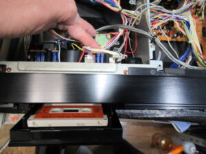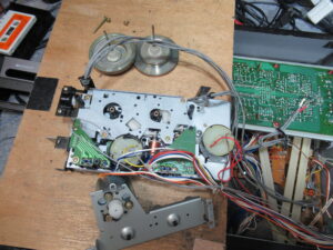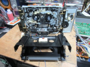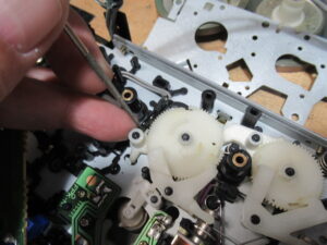 メカを引き上げて、まずはカセットホルダーを取り外します。