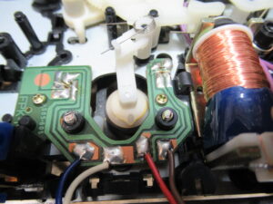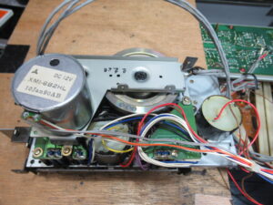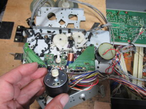 さらに分解を進め、早送り巻き戻し用のリールモーターを取り出します。