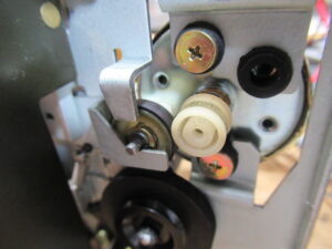 背面のモータープレートを取り外します。少し厚手で固めのベルトが使用されていましたのでスリップしやすかったようです。