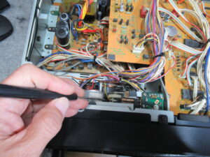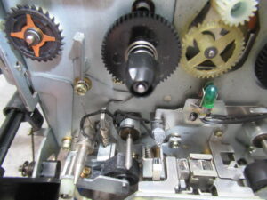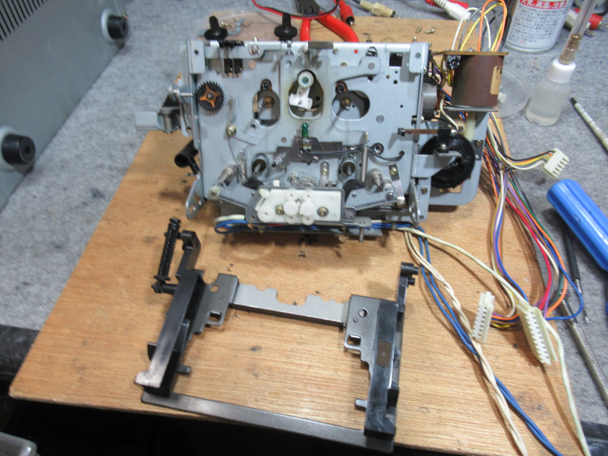 メカを降ろします。バックテンションベルトが切れていますので、後ほど処置します。
