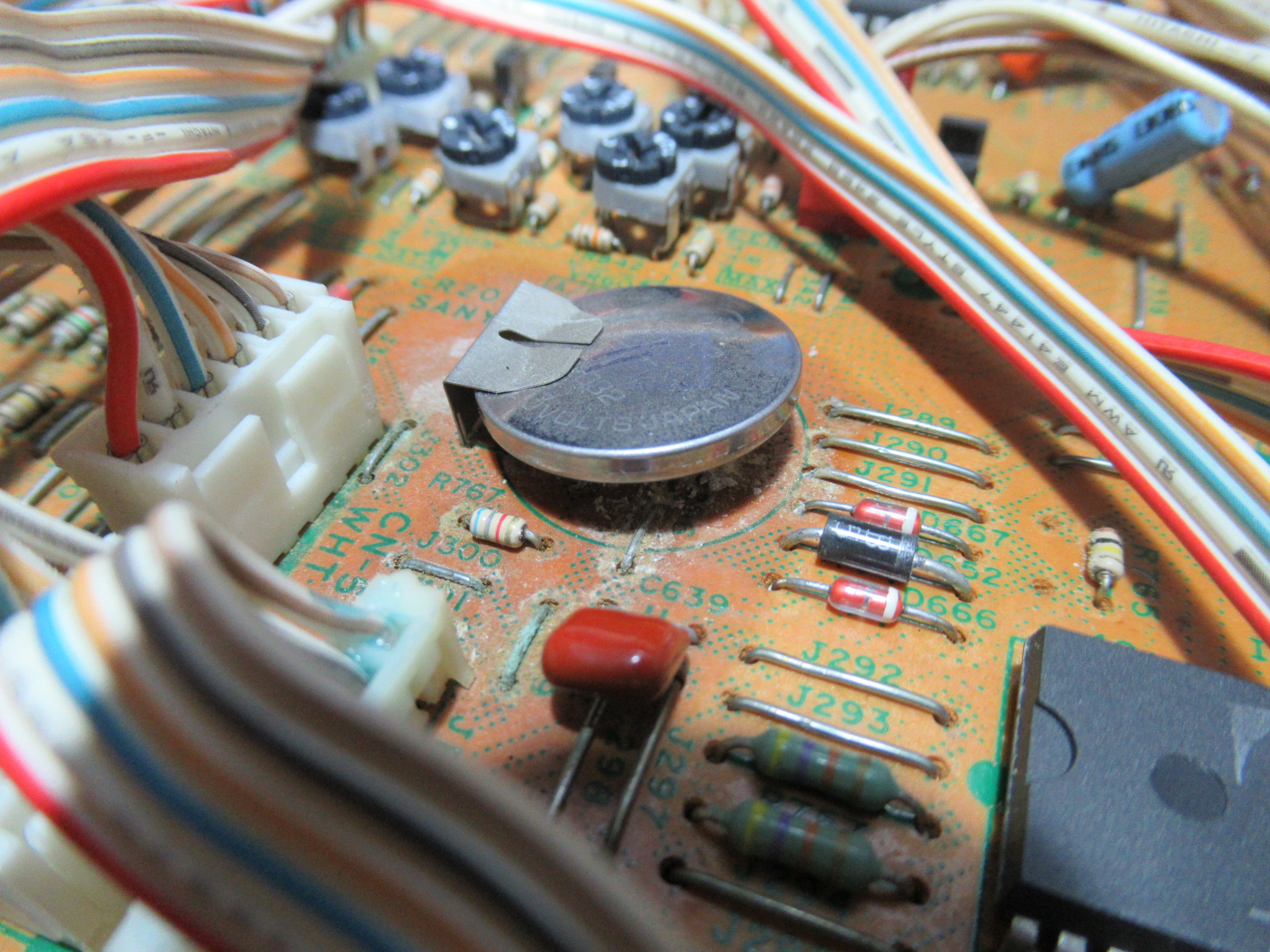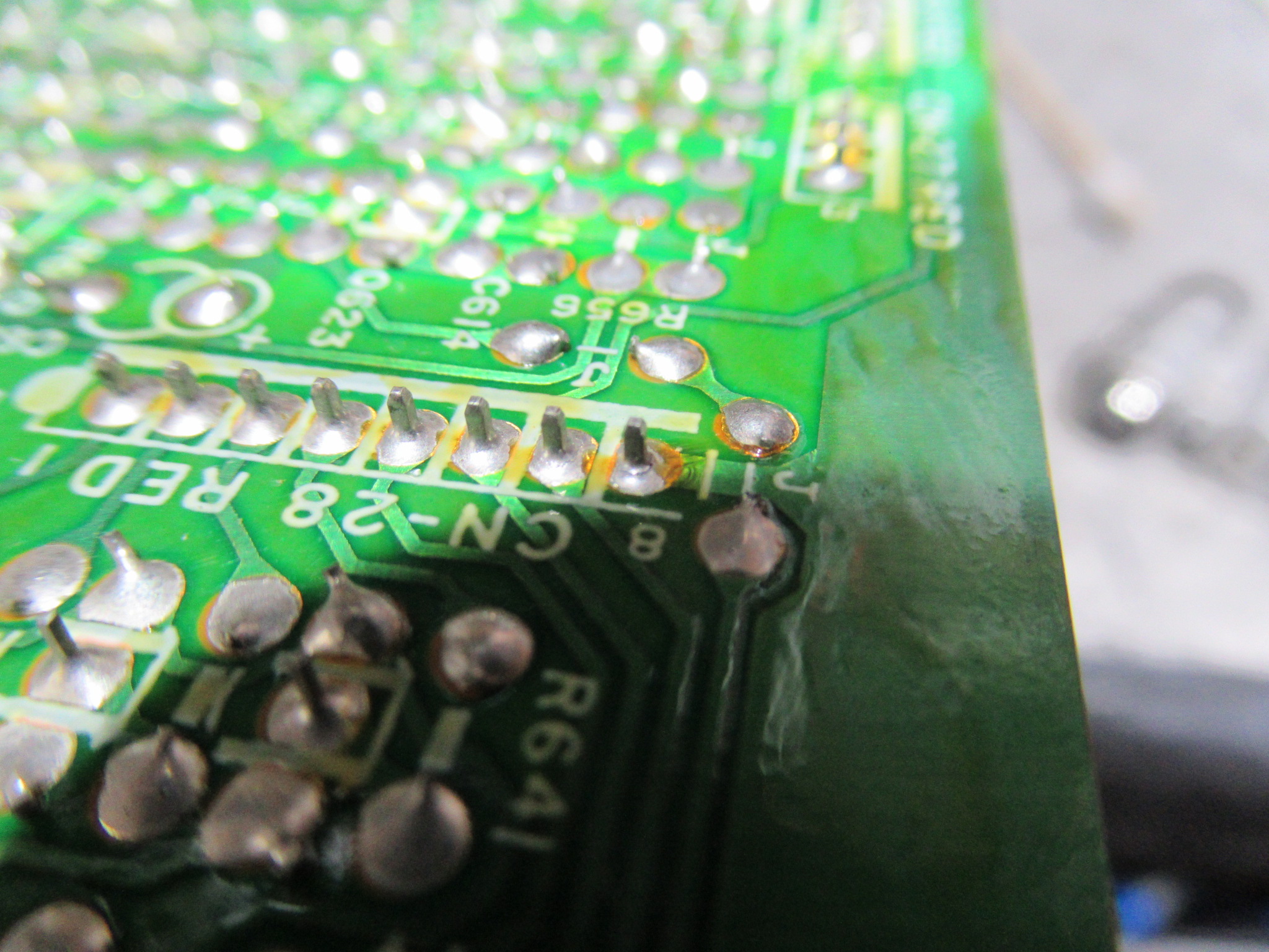取り外して点検を行いましたが、液漏れによる周辺の断線はありませんでした。しかし、液漏れによって要らぬところが導通していた可能性はあります。