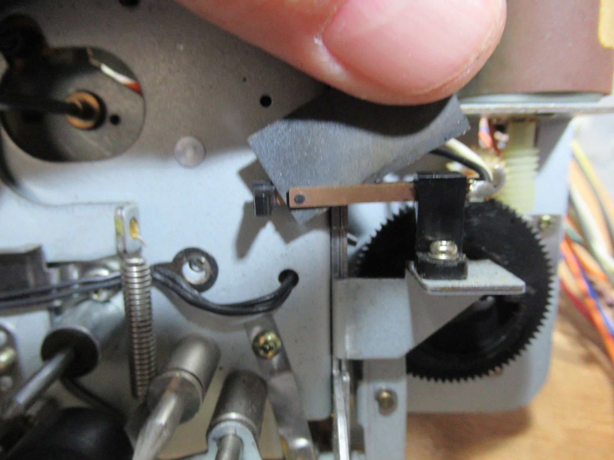 トレイ開閉を検知するスイッチ接点を磨きます。