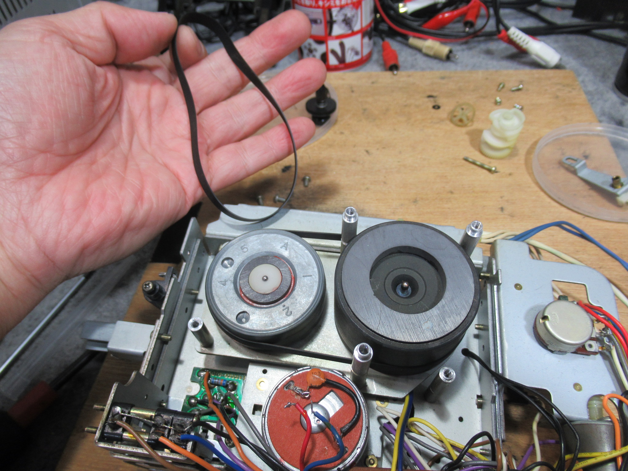 キャプスタン部を清掃して注油し、ベルトを交換します。