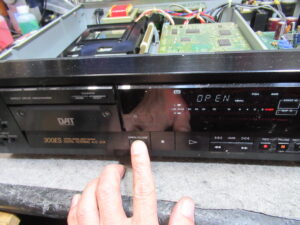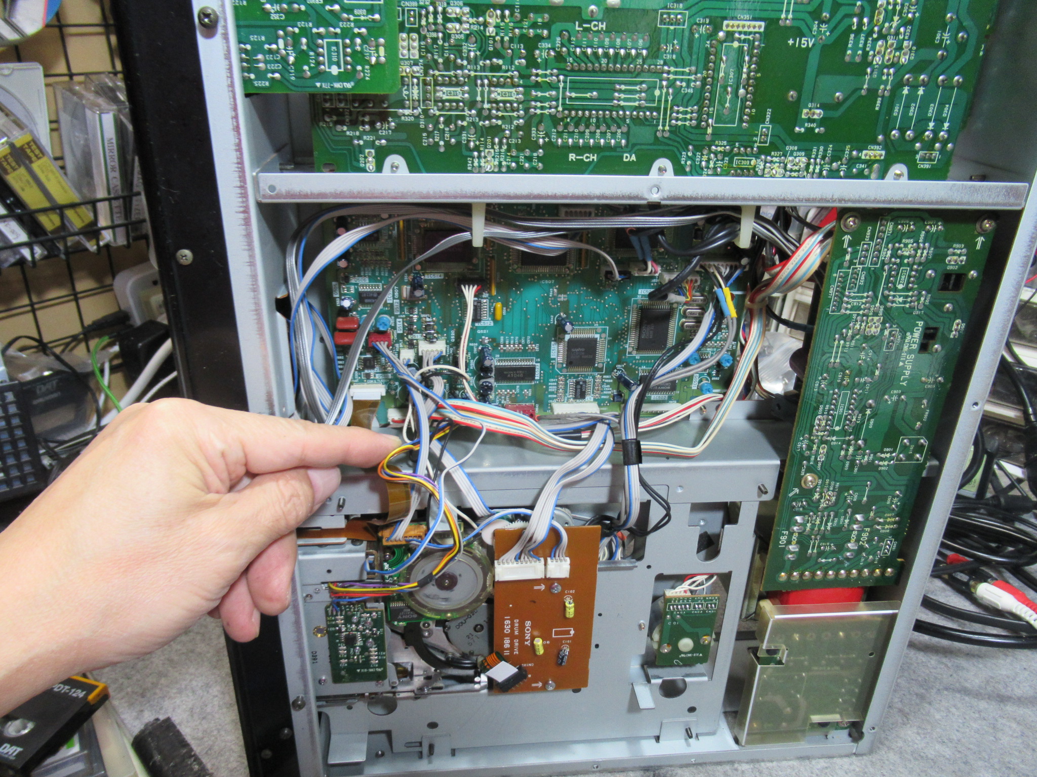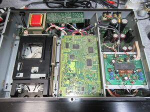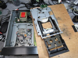 しかし、ローディング後のテープの挙動が不安定で、たるみが発生したりしましたので、トレイユニットを取り外して点検を進めます。
