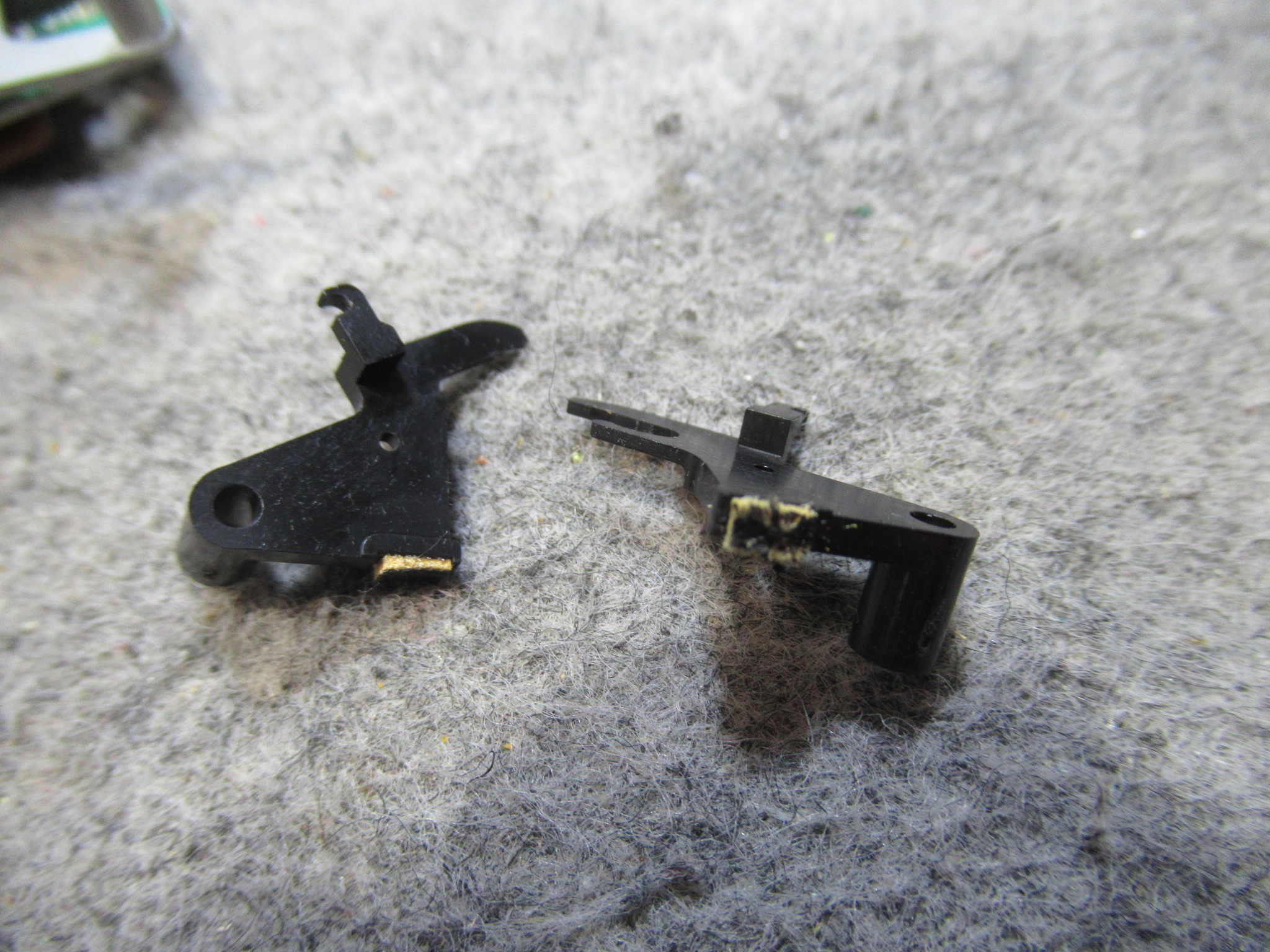 動作確認中にいきなり不動となりましたので、点検すると、ロータリーエンコーダーのギヤが割れてしまったようです。元々補修されていたものですが、強度不足だったようです。
