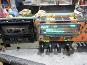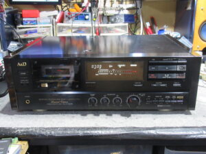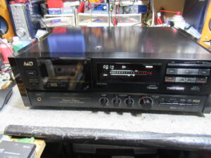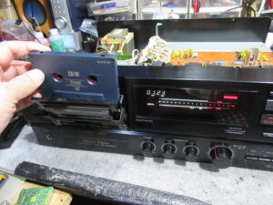 動作確認を行います。テープ後半部での音揺れというお話がありましたので、ピアノのロングトーンが録音されたCDで確認しましたが、問題の無いレベルです。