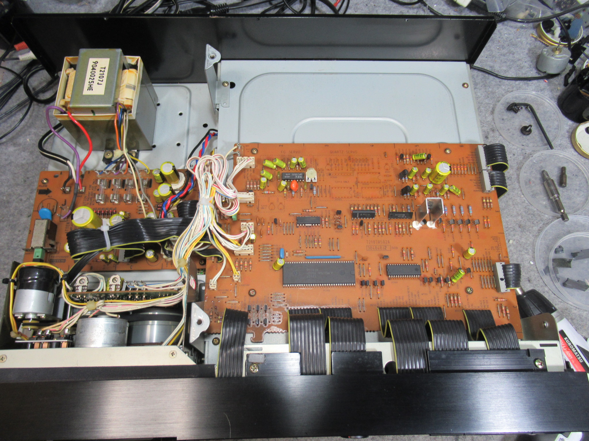 カバー、フロントパネル、底板を取り外しメカを取り出します。