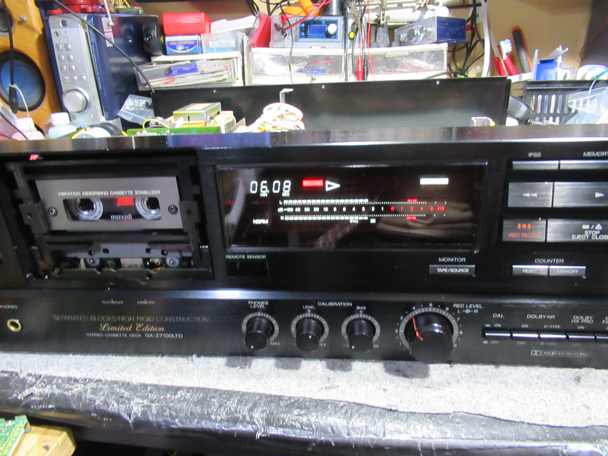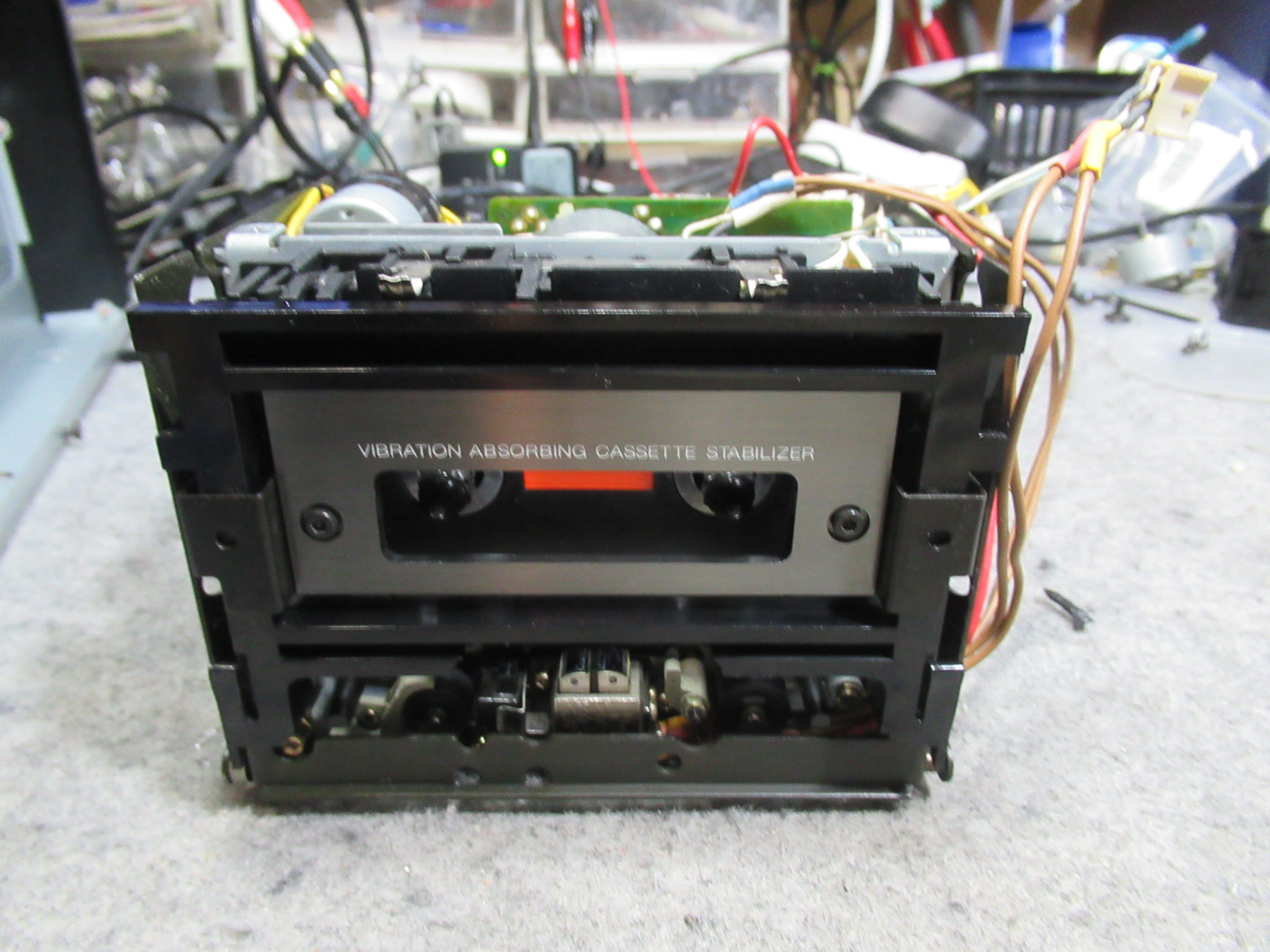 動作確認を行います。テープ後半部での音揺れというお話がありましたので、ピアノのロングトーンが録音されたCDで確認しましたが、問題の無いレベルです。