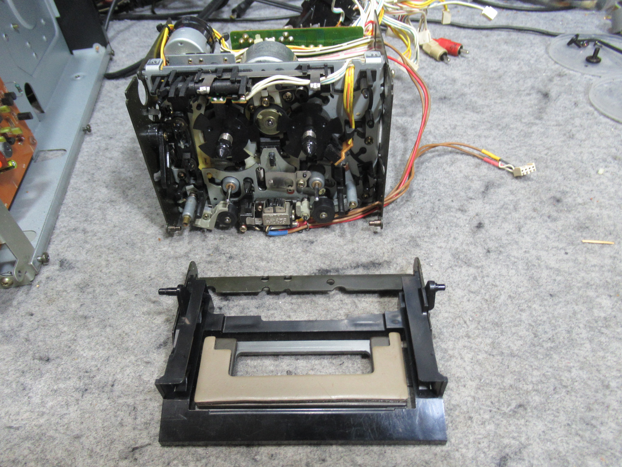 カセットホルダーと化粧パネルを取り外し、テープガイドを交換します。当店も補修済みのものとなりますが、見た目ではほぼわかりません。