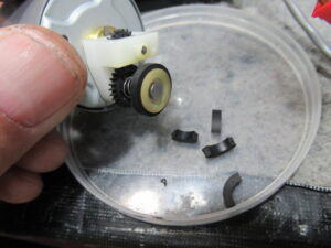 リールモーターを取り外します。アイドラーゴムが割れています。