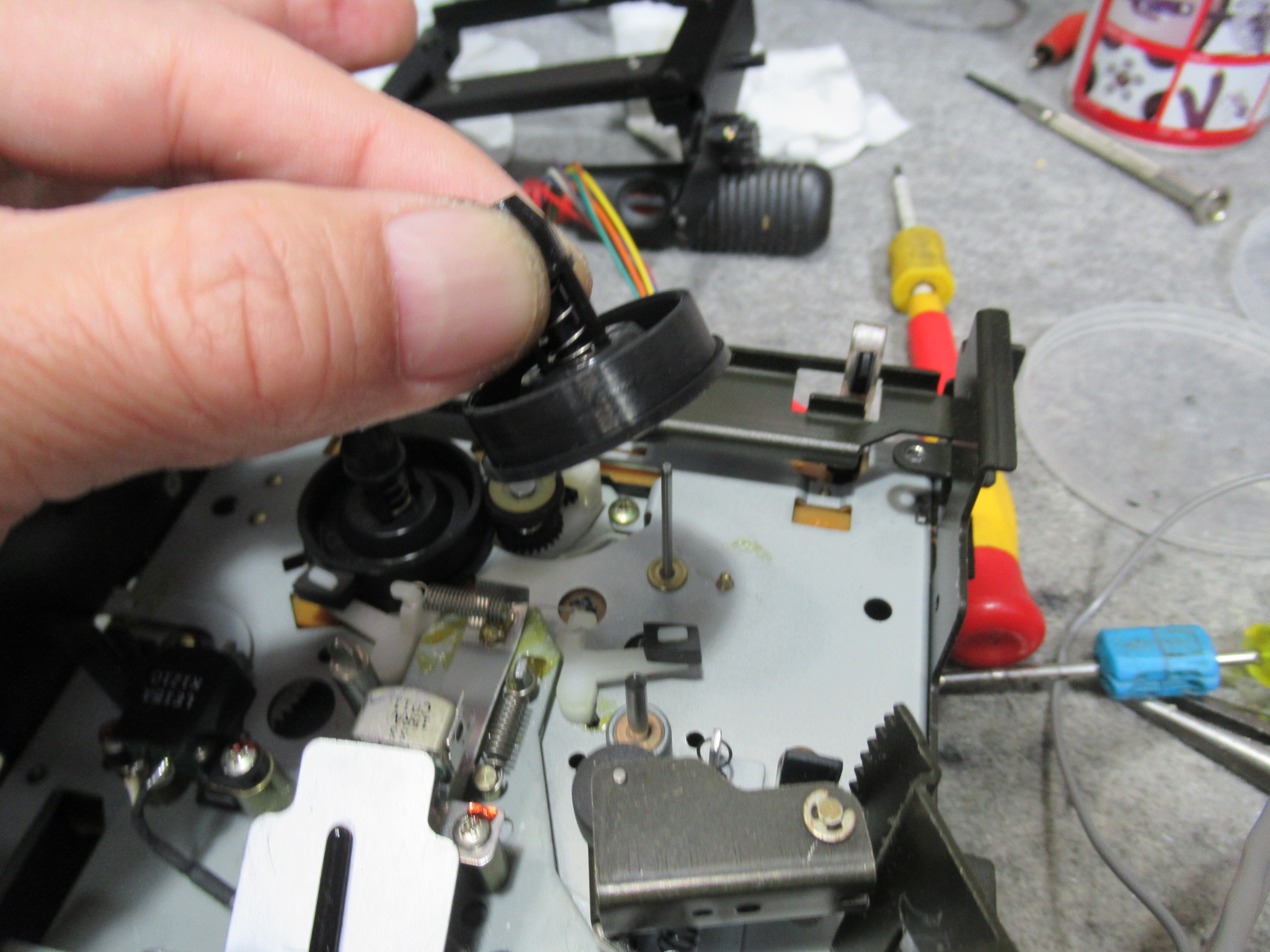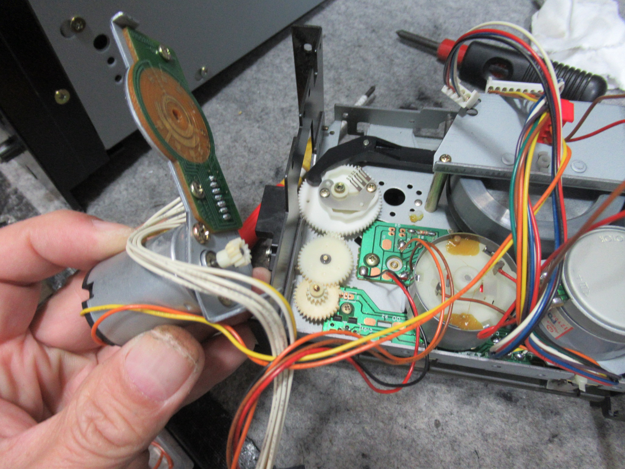 リールモーターを取り外します。アイドラーゴムが割れています。