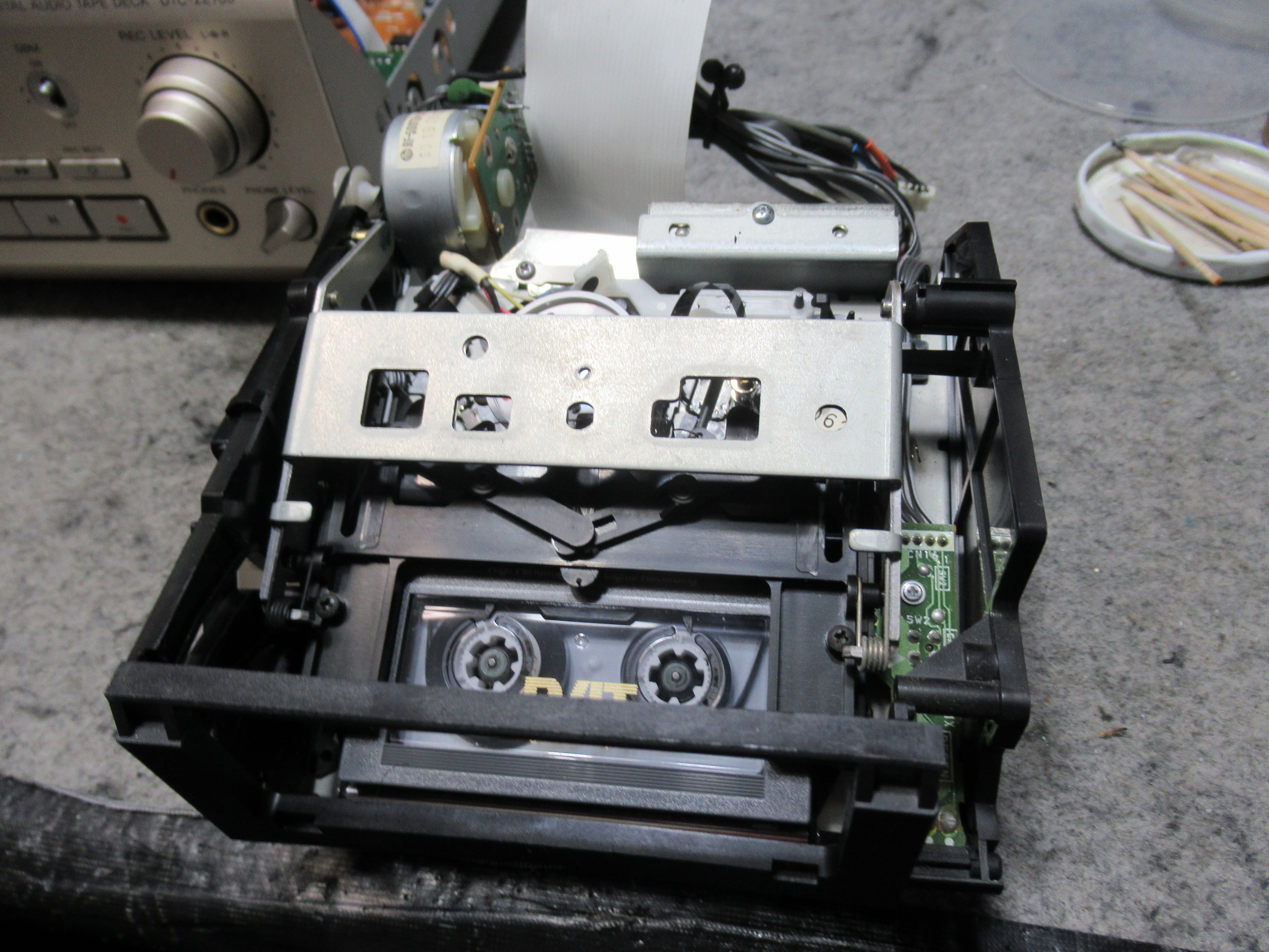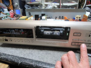 メカを本体に戻して動作確認します。正常な状態に戻りました。動作状況を目視で確認しましたが、特に動作不良は無く、なぜテープにトラブルが起きたのかは不明です。今回は以上です。