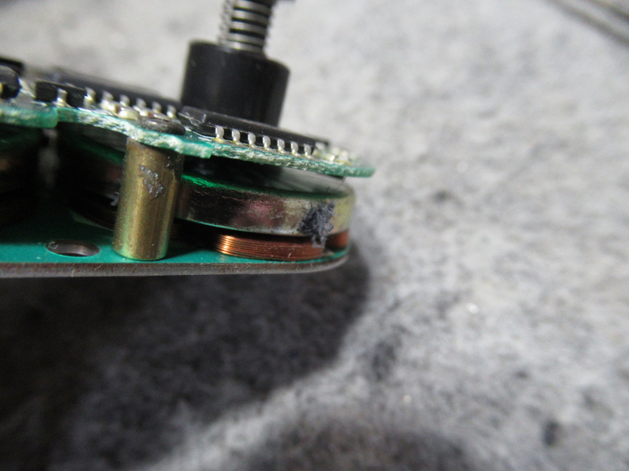 2DDリールユニットです。左側はブレーキパッドが固着、右側は剥がれたパッドが張り付いています。