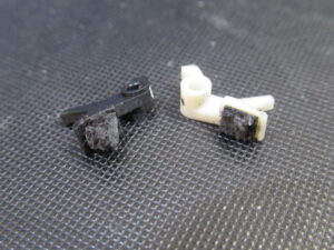 分解します。白黒のパーツがブレーキです。
