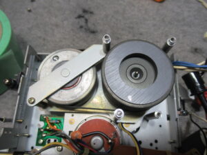 キャプスタンの貫通部を清掃して注油し、新しいベルトを掛けて組み付けます。