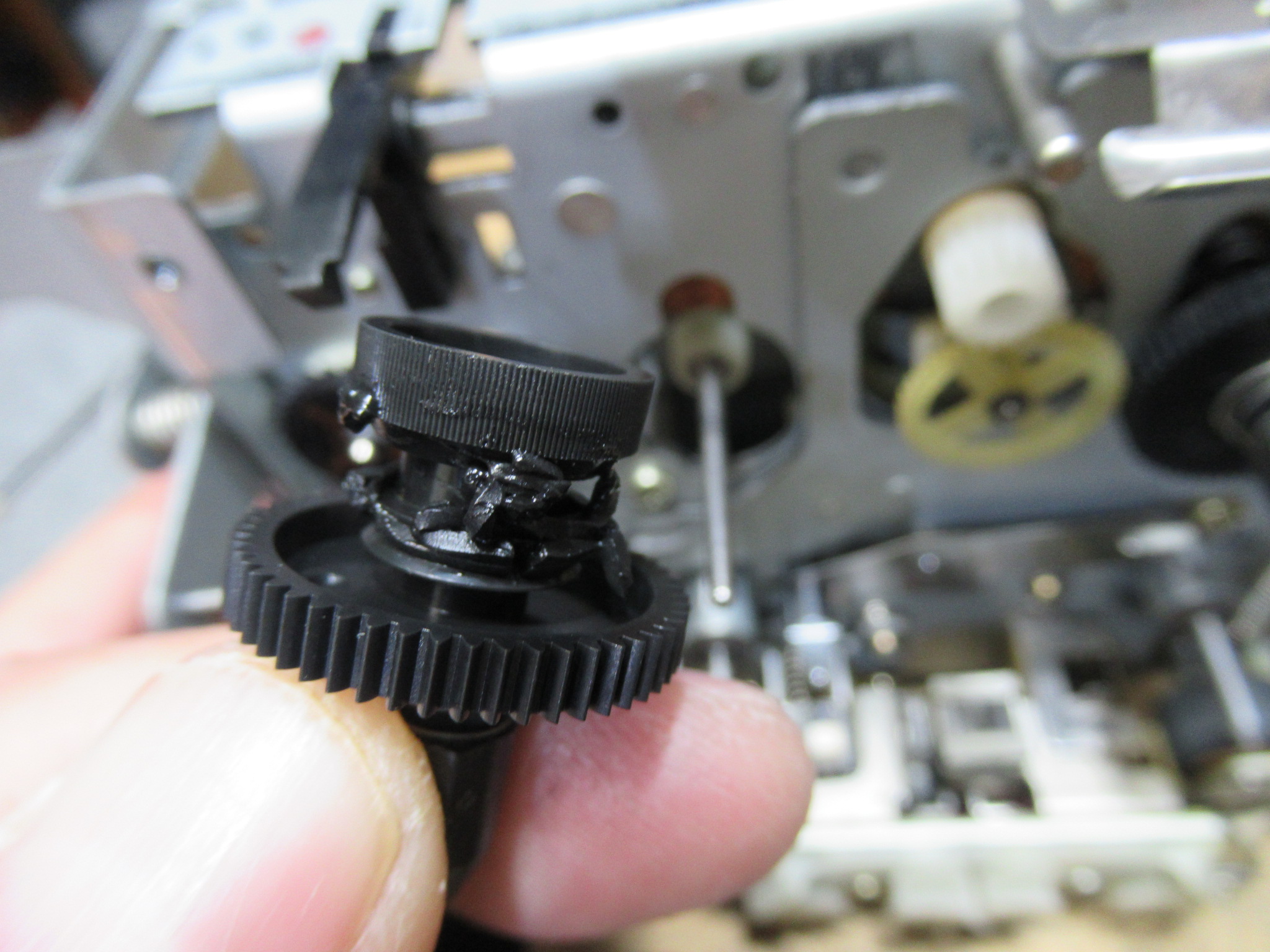 バックテンションベルトが溶けてリールに巻き付いていますので、綺麗に除去清掃します。