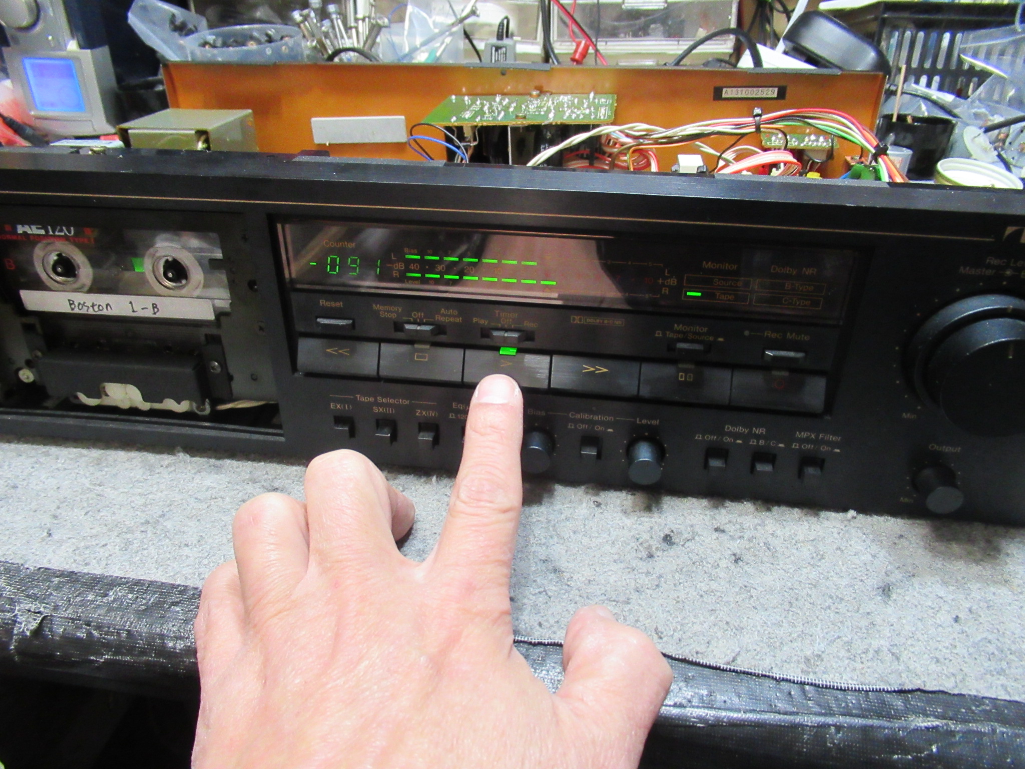 本体に戻して動作確認を行います。長尺テープの冒頭部でトラブルが発生しやすいので、そこを重点的にテストします。