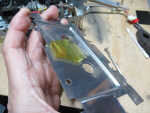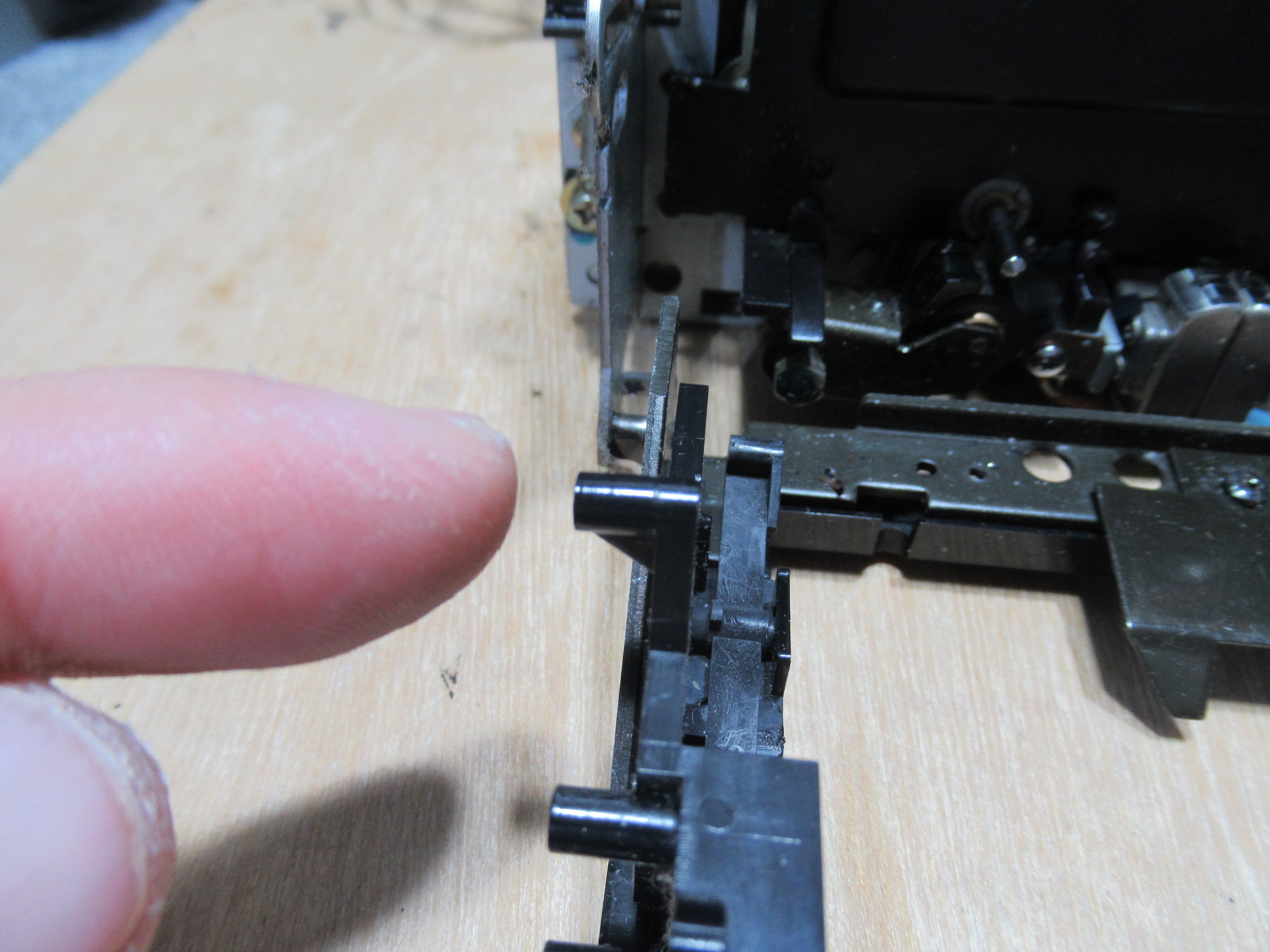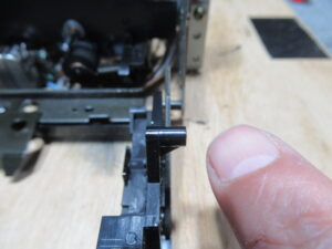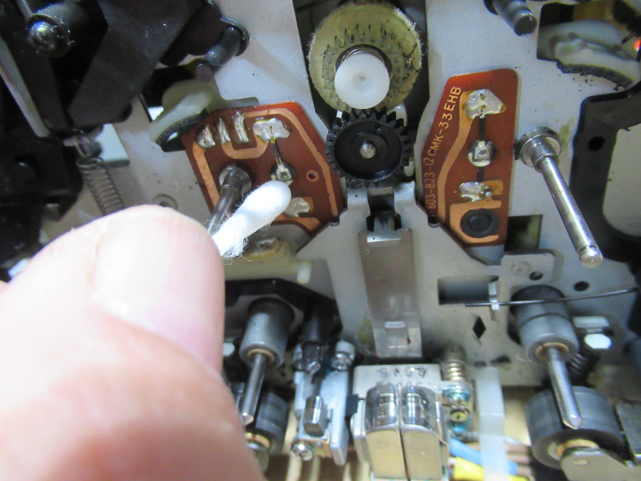 モーター基板を取り外し、ヘッドを持ち上げるレバーの支点部に注油します。