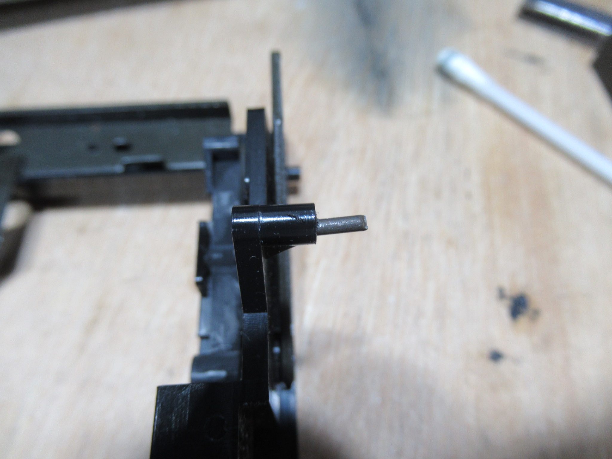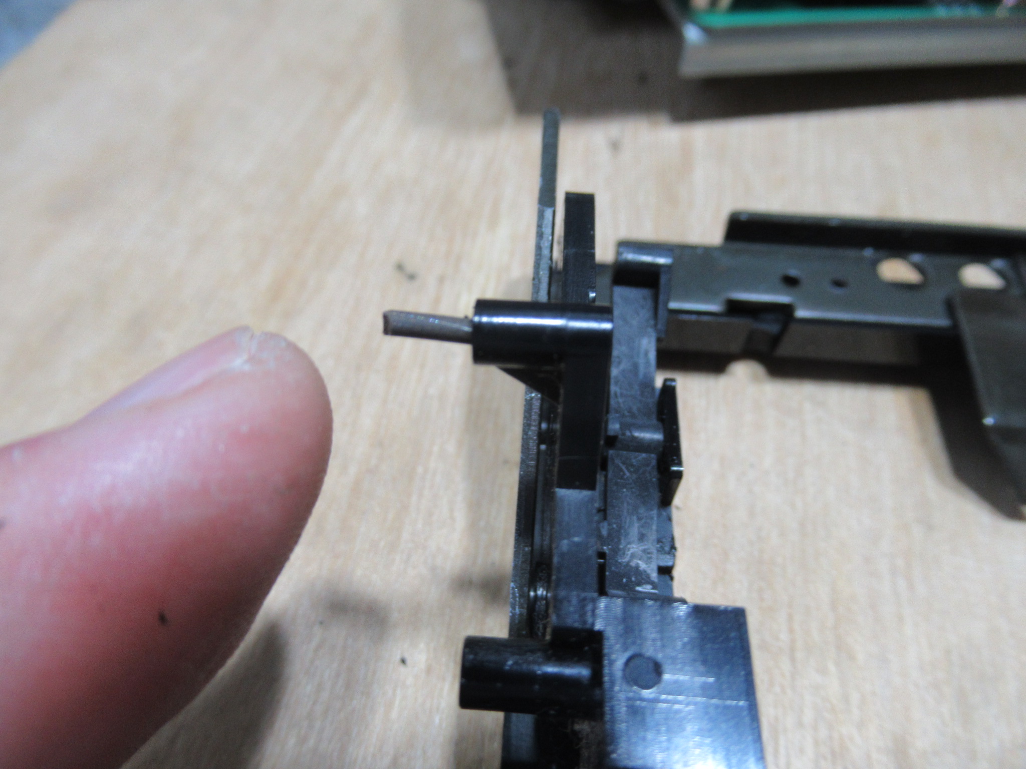 ホルダーのガイドピンが両側とも破損しています。左側はバネを支える箇所ですので破損しやすいのですが、右側が破損しているのは初めて見ました。