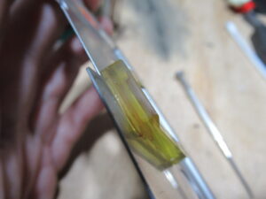 黄色のプリズムは、ランプの光を回転センサーに導くためのものですので、表面のチリを清掃します。
