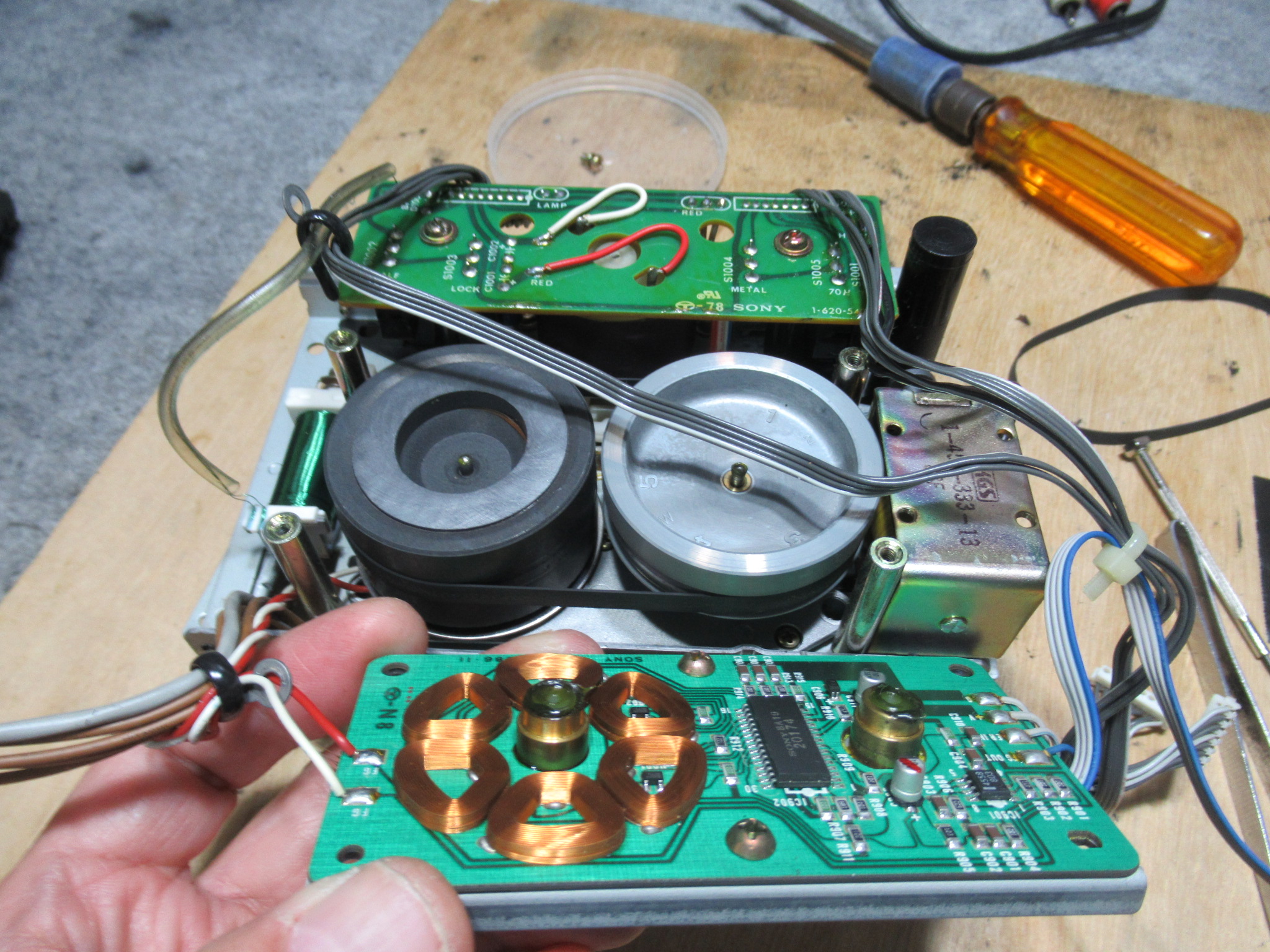 SONYのTC-K555ESXです。 ブレーキ用のソレノイドが動作しないということです。 断線していたソレノイドの配線をDIY作業で復旧したところ、ショートさせてしまい、ヒューズが切れてしまったという …