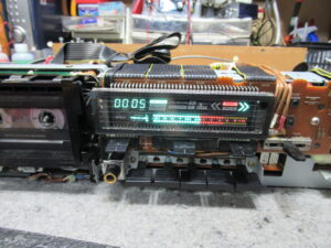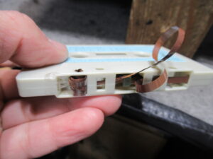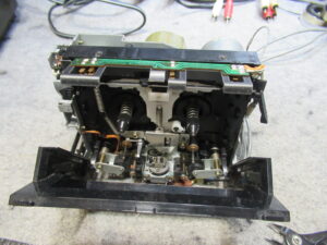 1mほどのテープが巻き込んで、紙縒り状になっていましたので、一旦テープを引き出して、テープを伸ばして元通り収納しました。これでテープは使用可能になりましたが、かなりの損傷を受けているため、再生音に支障が出てしまいます。