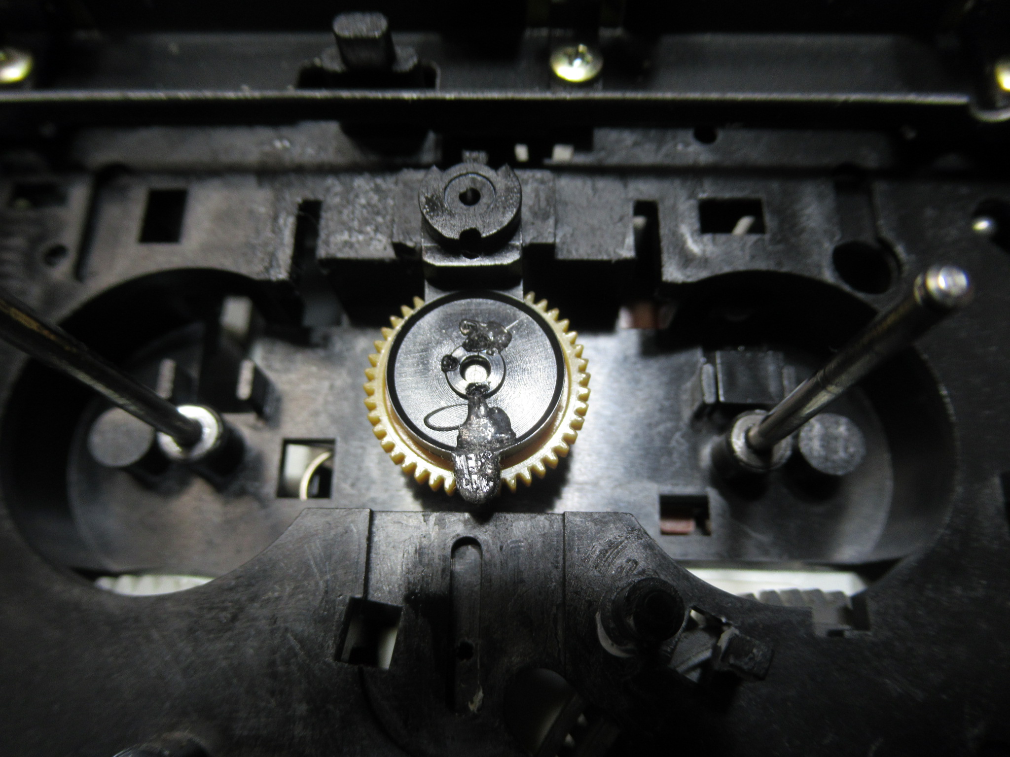 メカを元に戻して動作確認を行います。「コトコト・・」と小さな音が発生することがありますが、アイドラーがひび割れて偏心しているためやむを得ません。