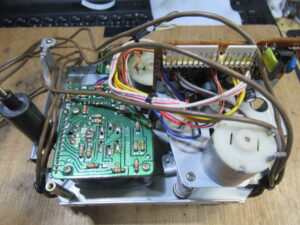 コントロールモーターユニットを分解します。黒色の円形パーツは、ヘッドを持ち上げるカムギヤです。