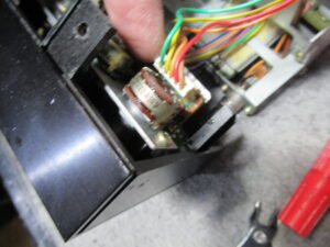 この写真は先ほどのカムギヤと組み合わさる箇所です。ここにカムギヤの回転を検知するVOLが取り付けられているのですが、なぜかVOLのシャフトが固着して回りません。そこで、接点復活剤を処置し、マイナスドライバーで回すことにより固着が解消されました。
