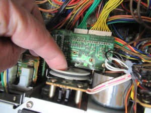 前回とは異なり、今回は操作ボタンにまったく反応がありません。それ以外の不具合としては「薄手のテープでのスリップ」「電源を切るとトレイが開く」「OUTPUT-VOLのガリ」といった症状を抱えているということです。修理を進めていくと、スリップとトレイの不具合も同じ原因であることがわかりました。