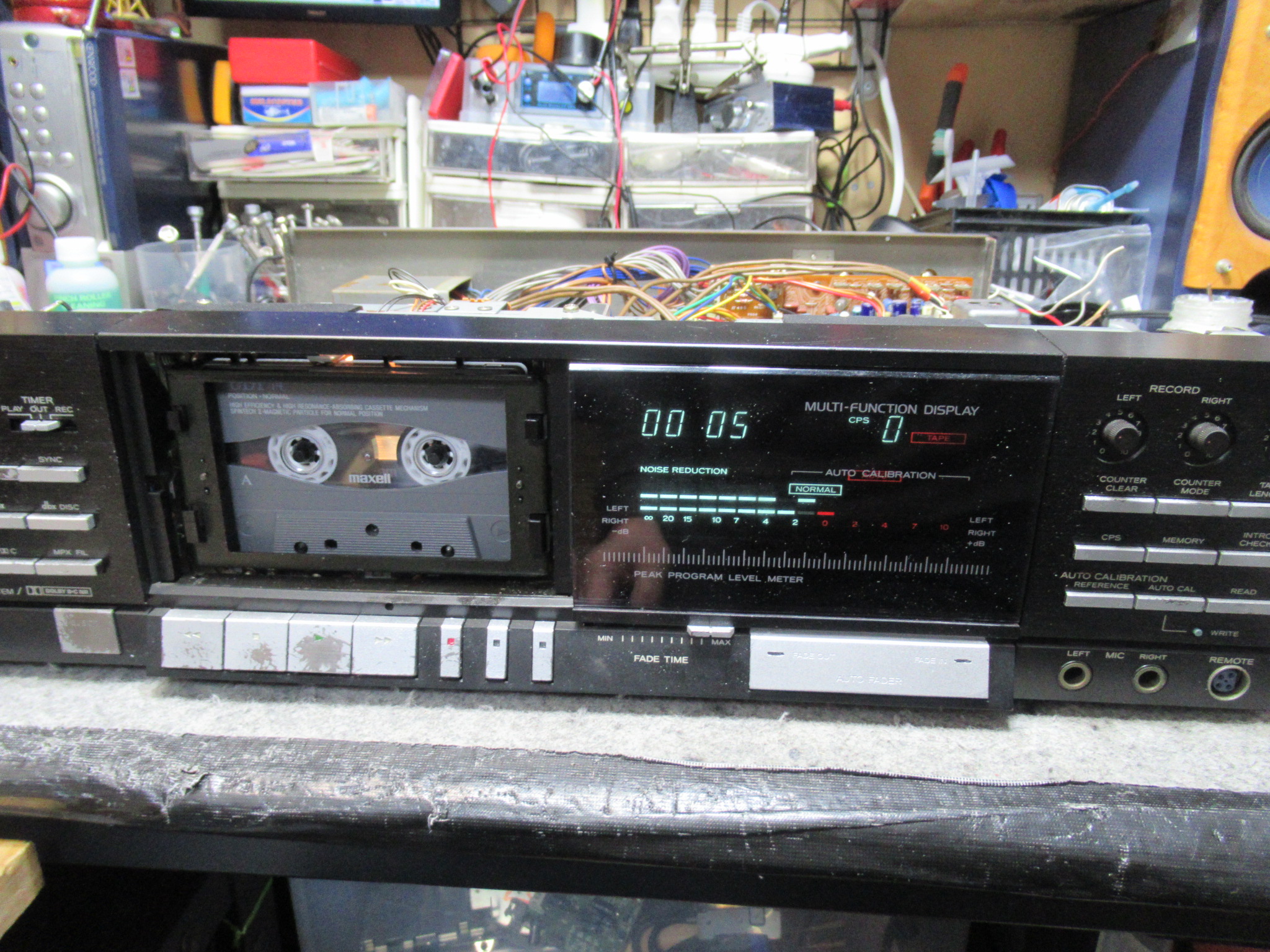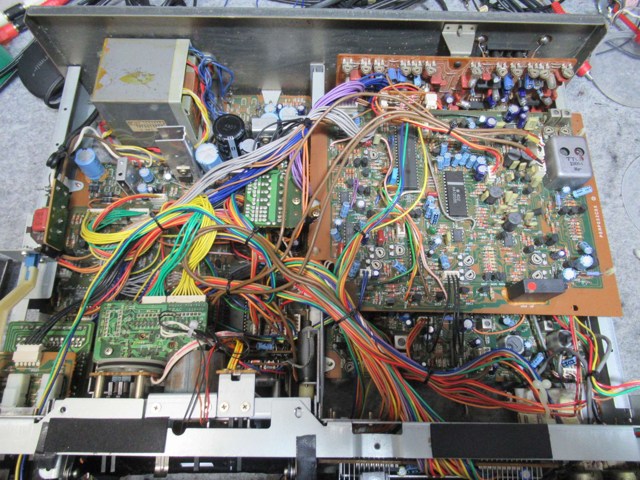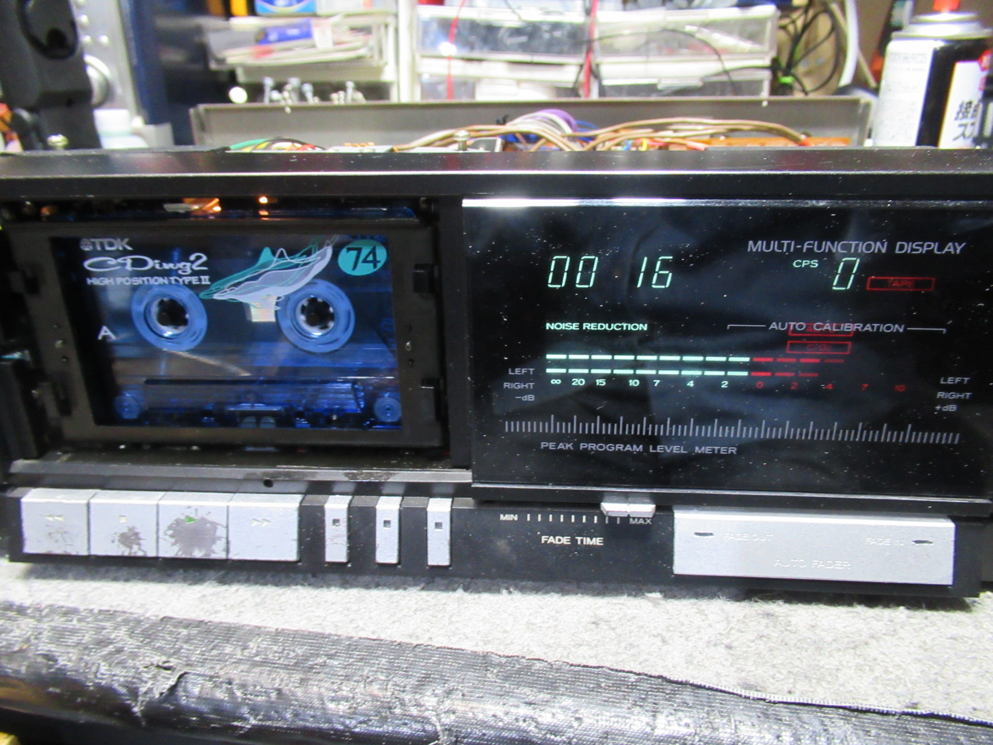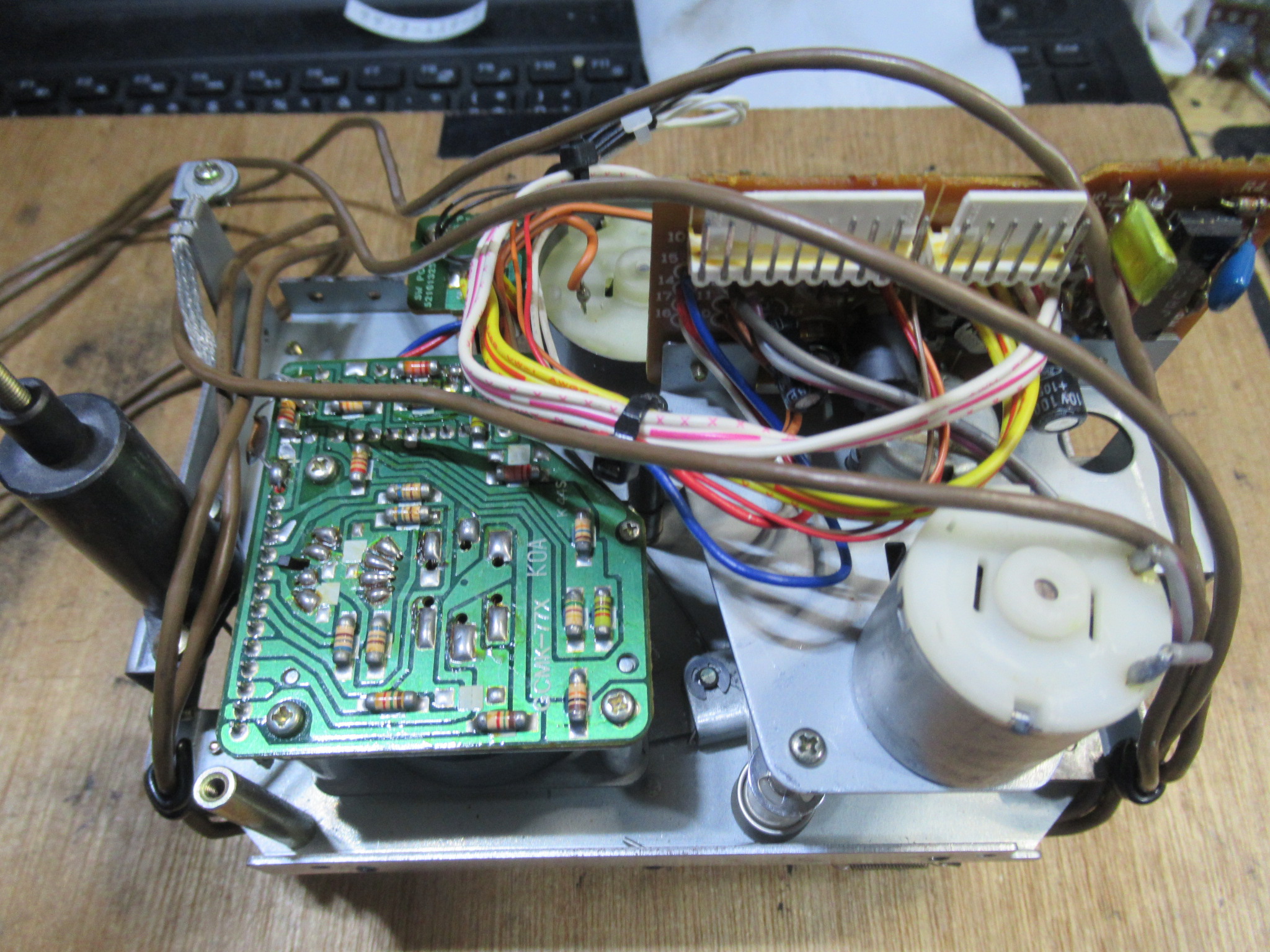 元通り組み付けます。無事復活しましたが、今回のように普段使用している機器のVOLが固着するということは極めて稀です。また、なぜ突然固着したのか不思議です。しかし、後から考えてみると、カムギヤの動きが重くなっていたため、トレイが勝手に開いたり、テープスリップという動作不良が今回の故障の前兆として起きていたようです。