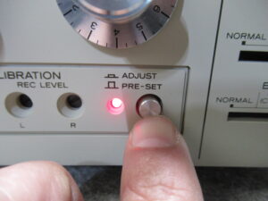 この機種には、バイアスとレベル調整を基板上の半固定抵抗で調整する「PRE-SET」と、フロントパネルで調整する「ADJUST」の切り替えがあります。「ADJUST」は、テープの種類によって使用者が自由に調整するためのものですので、今回は、「PRE-SET」での調整を行います。