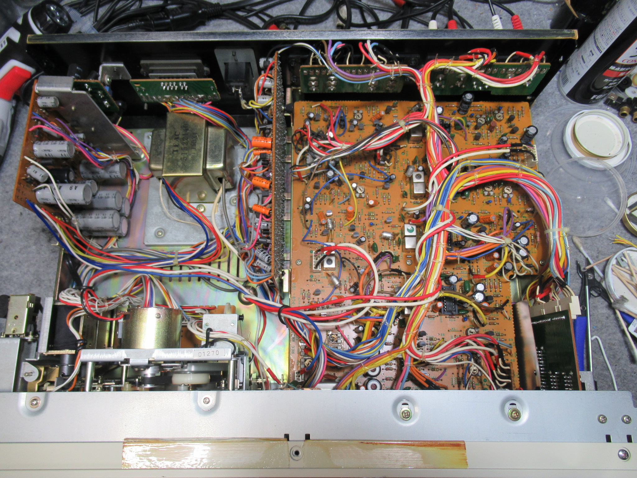ただし、TDK-AEなど、一部のテープでは、バランス等の録音状況が非常に悪いということです。特定のテープで不具合が発生する理由として、カセット内蔵のパッドとの相性が原因と考えられます。シングルキャプスタン機は、デュアルキャプスタン機に比べ、テープとヘッドのタッチが弱いため、影響を受けやすい傾向にあります。