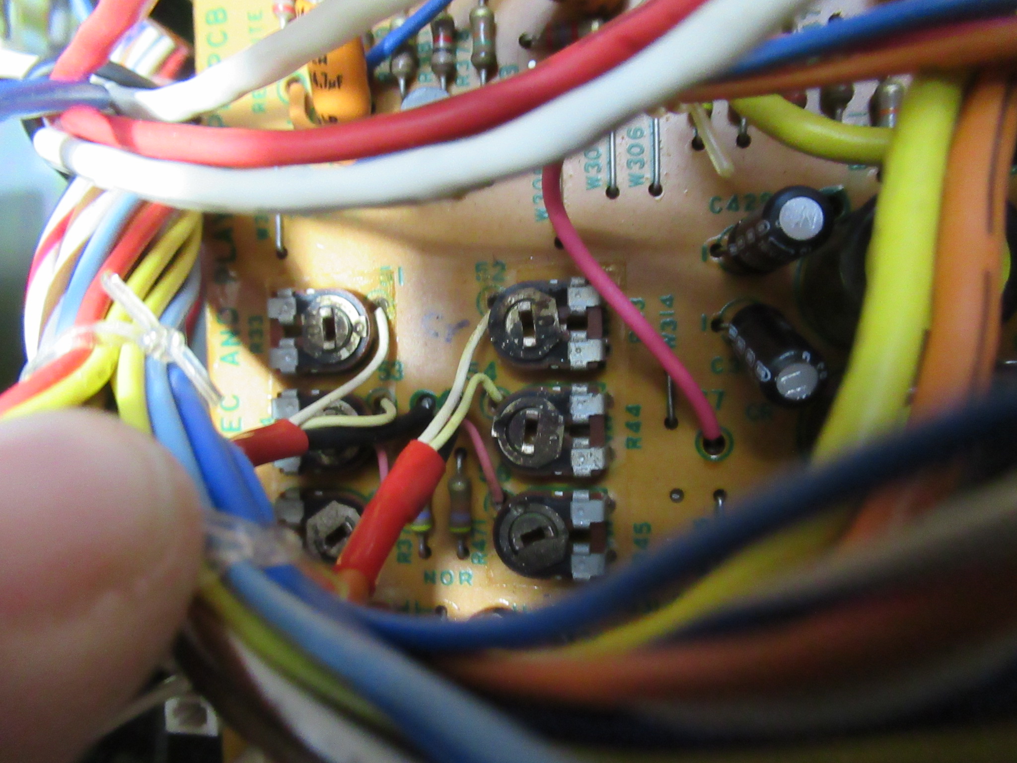基板上の半固定抵抗を回してレベルが同じになるよう調整します。この機種は、テープポジション別に行うことができます。
