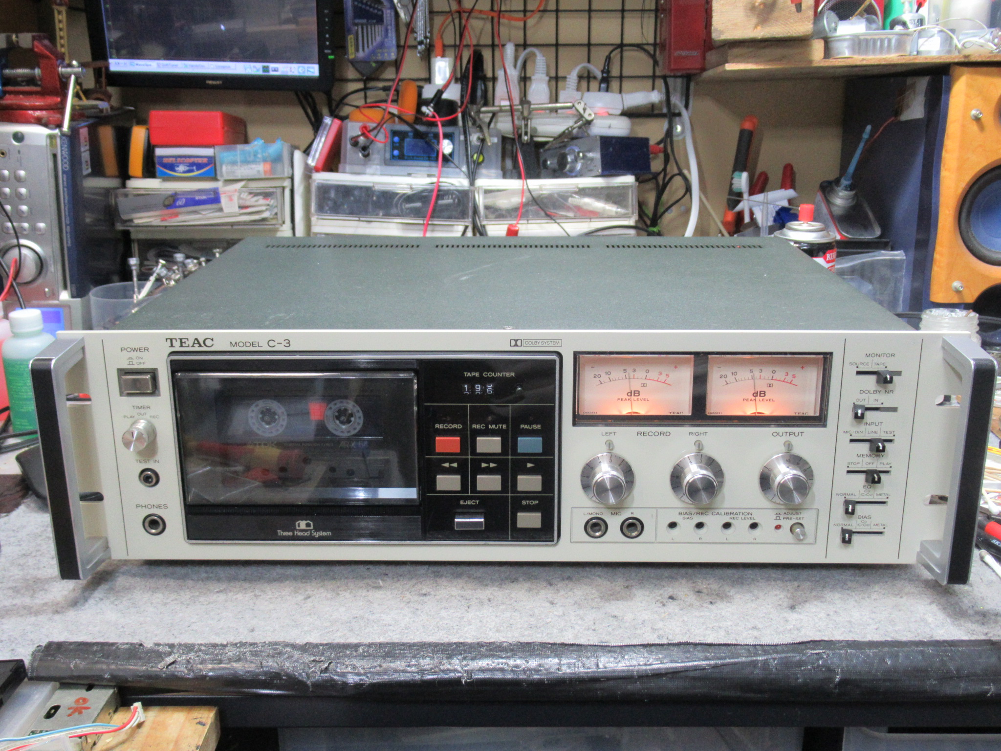 TEAC製3ヘッドシングルキャプスタンカセットデッキ、C-3です。最近入手されたそうです。今回は、調整等を行います。