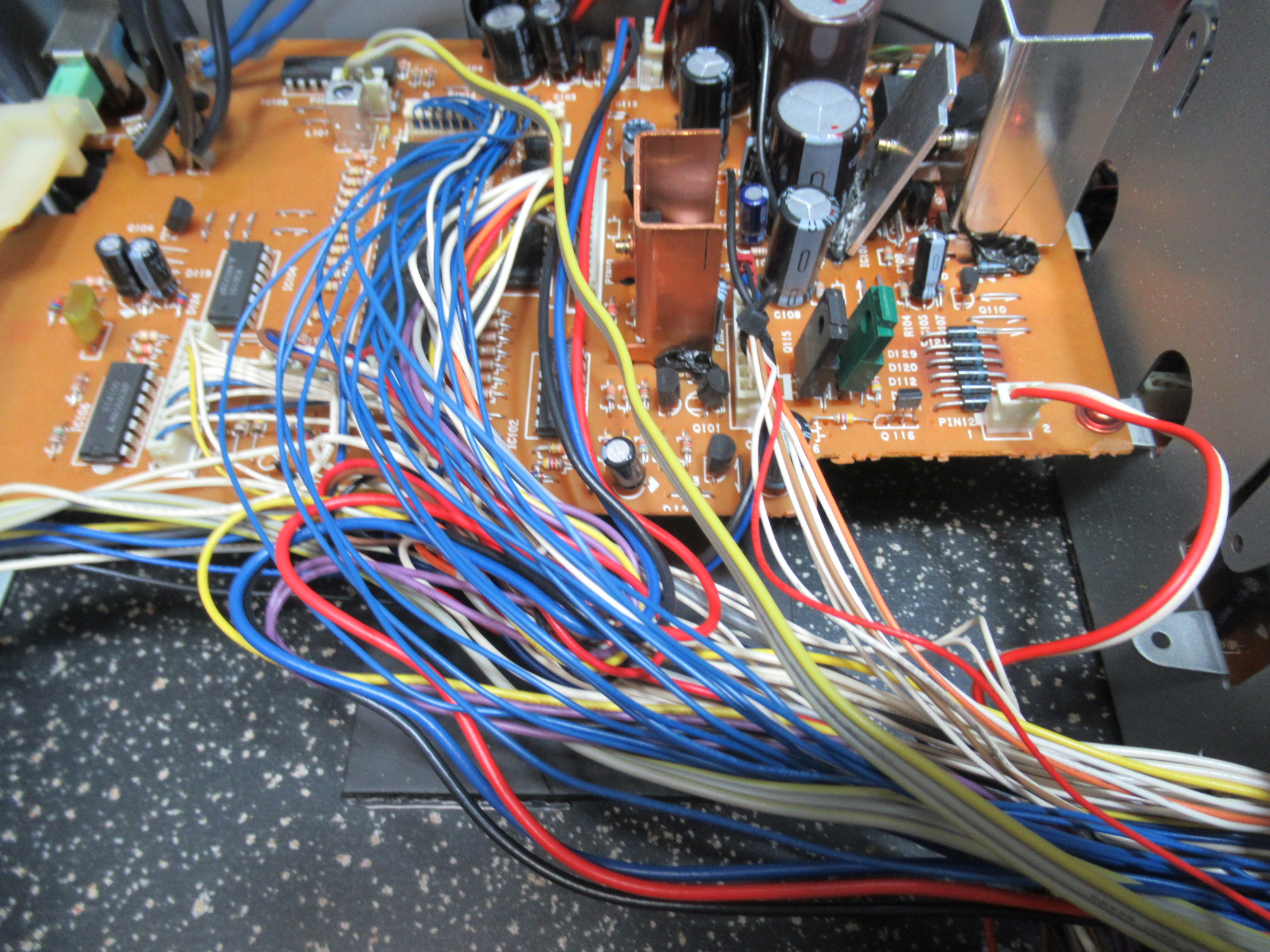 カバーを開けます。以前修理歴があるということですが、ケーブルが束ねてありませんので、個人修理でしょうか?