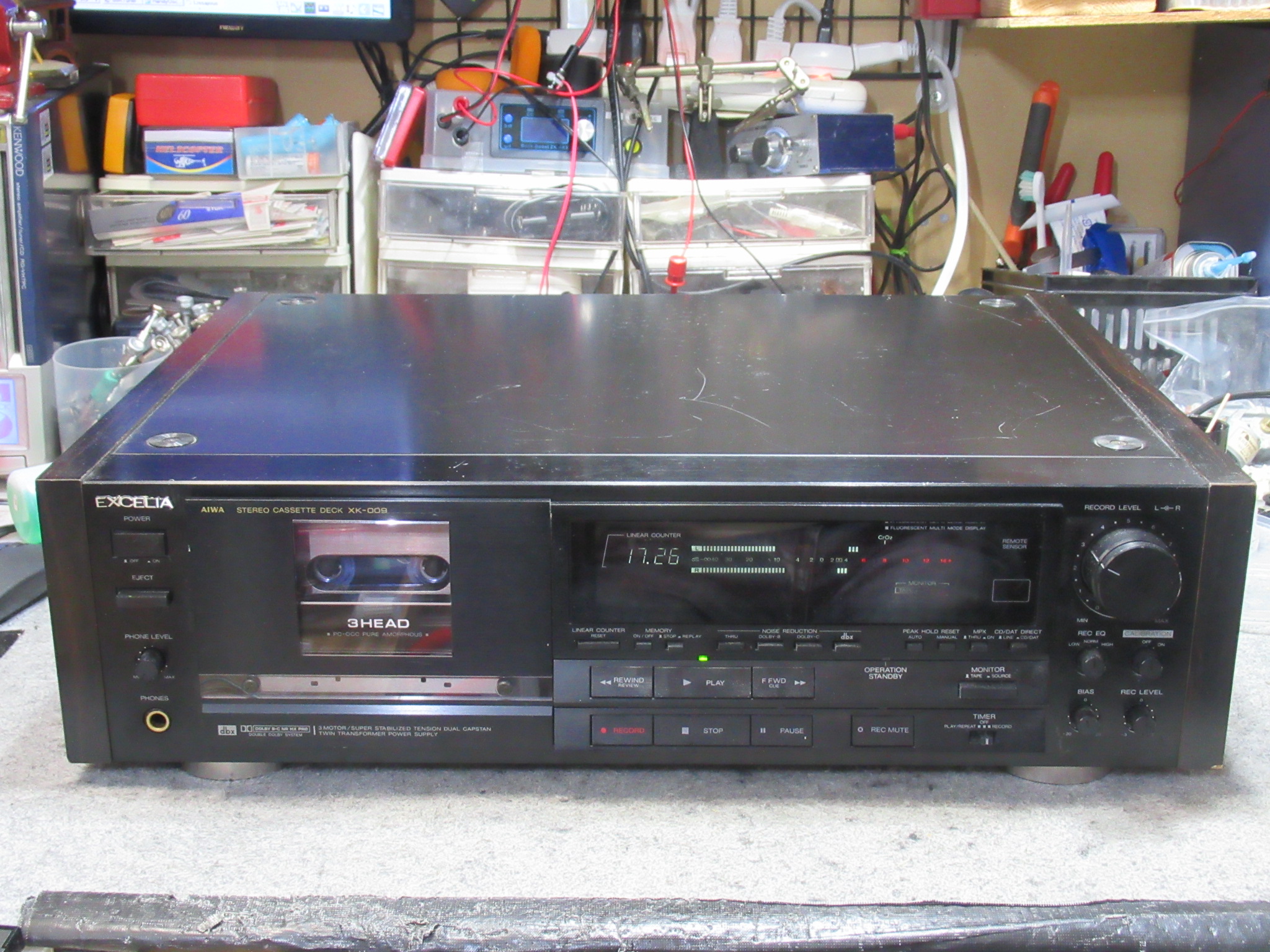 AIWA製3ヘッドデュアルキャプスタンカセットデッキ、EXCELIA XK-009の修理依頼をいただきました。