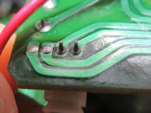 過去に修理歴があるようでしたので、小さなコネクタ部分を点検したところ、予想通り半田クラックが見られましたので再半田します。力任せにコネクタを引き抜くと簡単に半田割れが起こります。