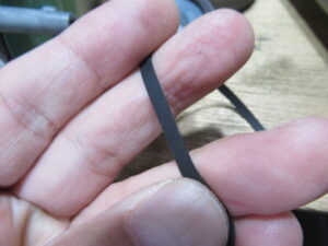このベルトには2つの材質の異なる種類のものが混在していますが、これは伸びやすいタイプですので交換が必要です。