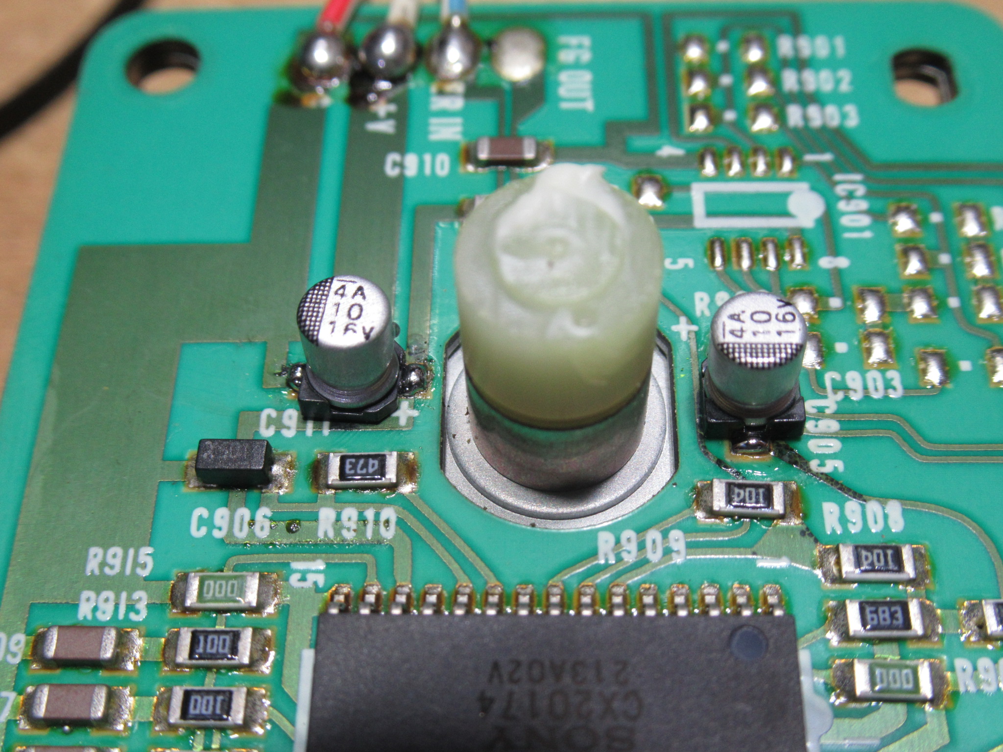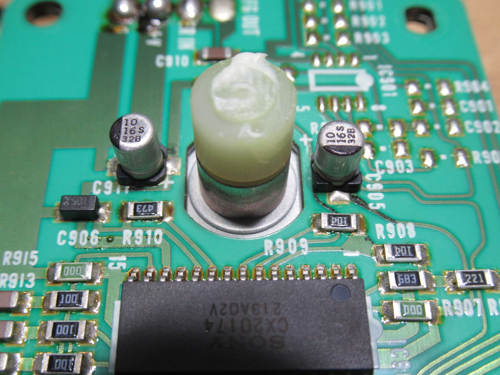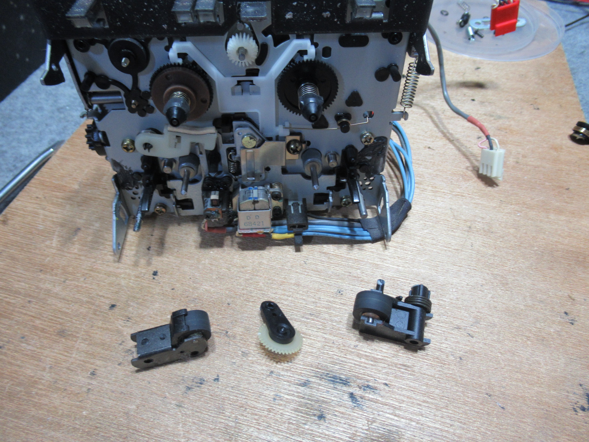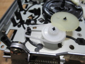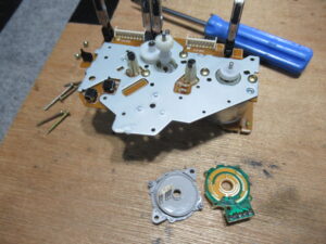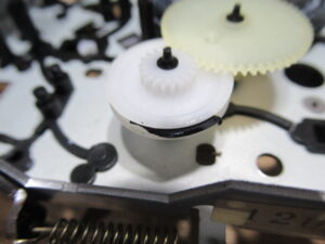 フロント部分を分解します。ベルトが溶けてプーリーに付着しています。